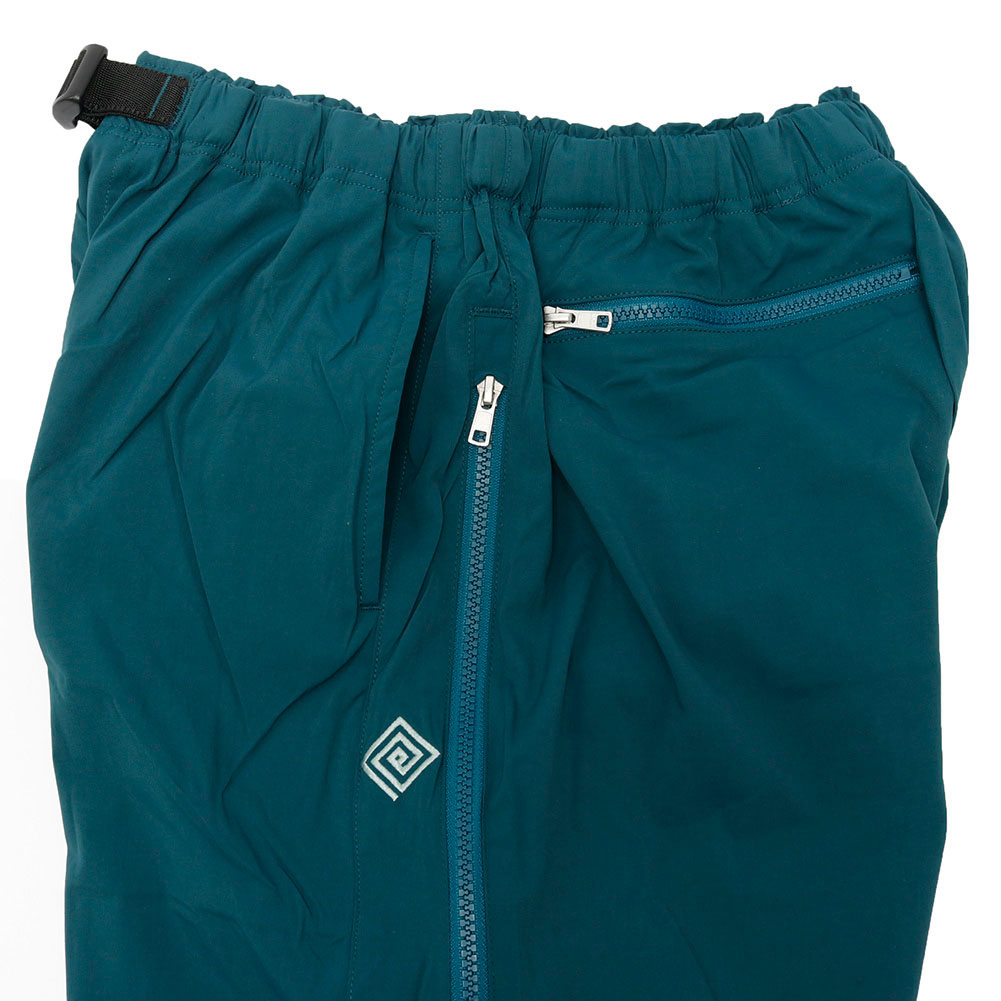 ELDORESOの秋冬の定番アイテム・パラシュートパンツから着想を得た、ランニングウェアとしては斬新なデザインの9.5分丈のランニングパンツです。様々なシチュエーションで着脱がしやすいよう、両サイドにウエスト下から裾まで大きく開閉が可能なジップを搭載。ランニングショーツやタイツの上に履いてもシルエットに響かないゆとりのあるサイジングに仕上げているのでオーバーパンツがしやすく、レース前後のウェアリングにも大変便利なアイテムです。デザインポイントでもあるサイドのジップにはダブルファスナーを採用。ランニングなどのアクティビティ時に体温が上がった際、ベンチレーションとしても役割も果たします。