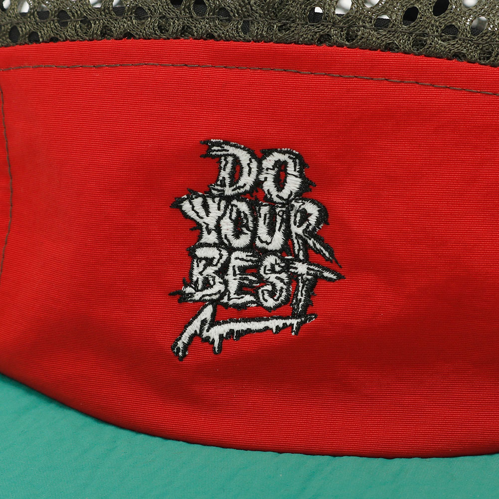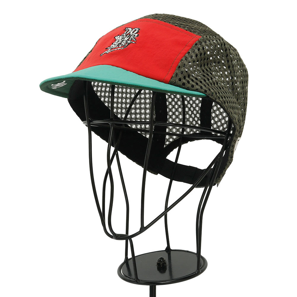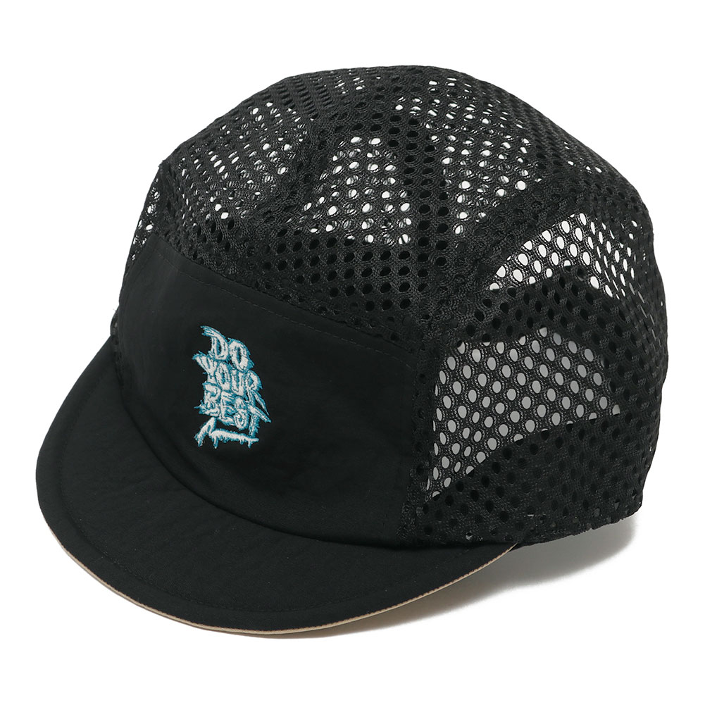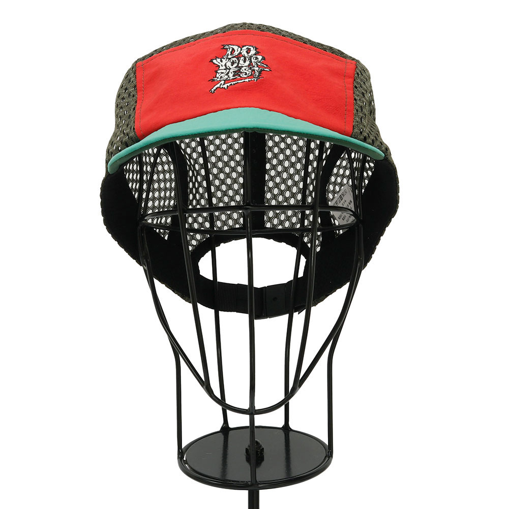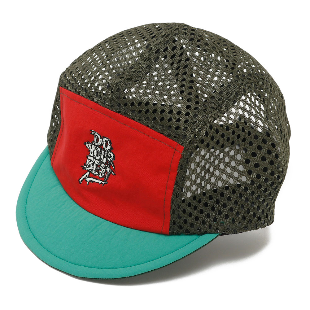 ELDORESOのスタンダードモデルの一つ、サイクリングキャップをベースにオリジナルのパターンで作成したジェットキャップタイプのランニングキャップです。フロントのパネルには、ランナーを鼓舞するワードを落とし込んだグラフィックをコンパクトなサイズの刺繍であしらいました。ブリム裏にも「One Step Beyond」のワードを手書き風のプリント配し、ツバを跳ね上げて被った際のアクセントになるように仕上げました。この型はELDORESOのキャップの中で頭囲の調節の幅が広く、フィット感のあるコンパクトなフォルムな為、頭の小さな方に人気の高いモデルです。通気性を確保する為、トップとサイドのパネルを目が大きく柔らかなメッシュに切り替えています。