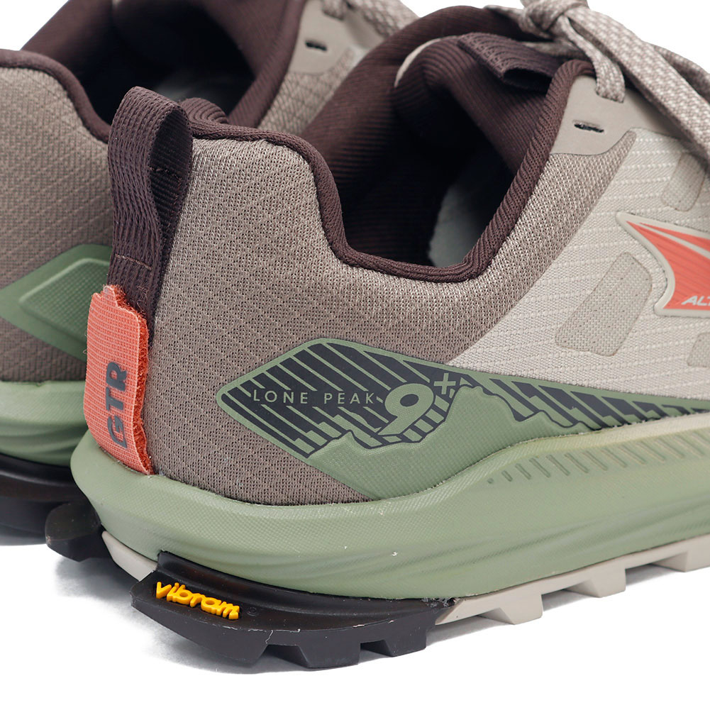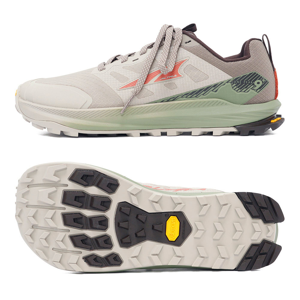 トレイルランナーだけでなく、ハイカーからも絶大な支持を受けているLONE PEAK。そのLONE PEAKよりアップデートされた9+が登場。より頑強なビブラム社のメガグリップに刷新されラグパターンも変更され、アッパー部分も岩場などでの摩耗や引き裂きに強いリップストップメッシュアッパーが使用されています。