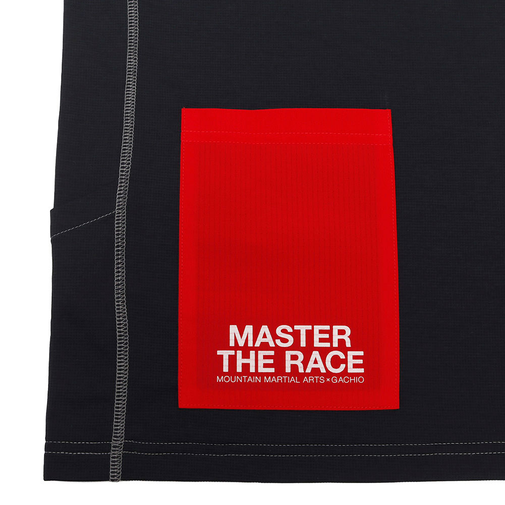 な構造で、フラットな縫い目と合わせて動きやすく快適な着心地。ガゼット下部には補給などが入るポケットを装備。袖はサムホール仕様。背中のマルチポケットには「MASTER THE RACE」のプリント。本体素材は、凹凸感のある軽量な機能素材を使用。肌面は撥水糸で汗をかいてもべたつかず、吸水速乾と抗 UV 機能を備える。しなやかで肌触りがよく、ライトアクティビティから長時間のヘビーアクティビティにも対応する。天然素材に比べ、洗濯しても速く乾くメンテナンス性のよさも魅力のひとつ。