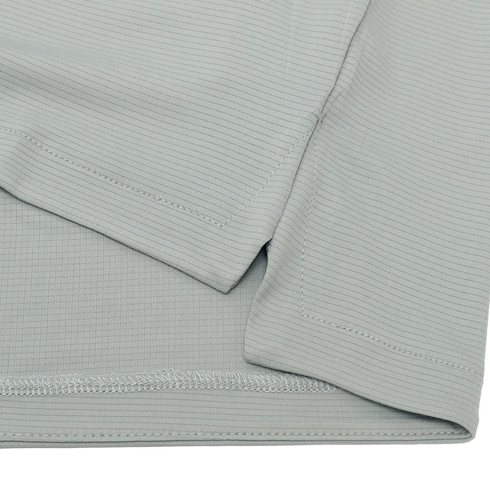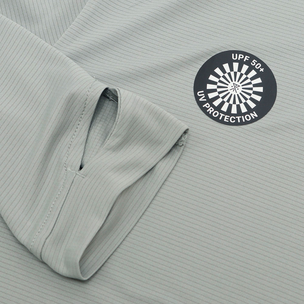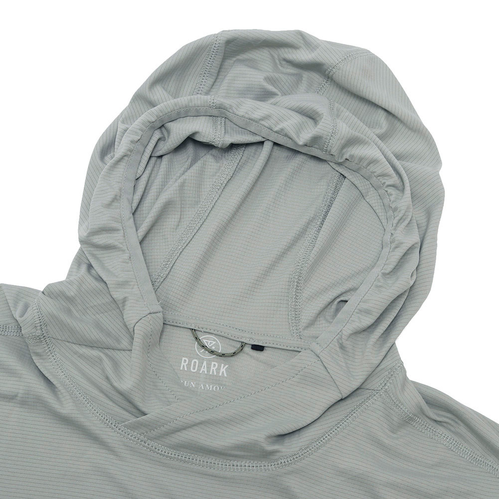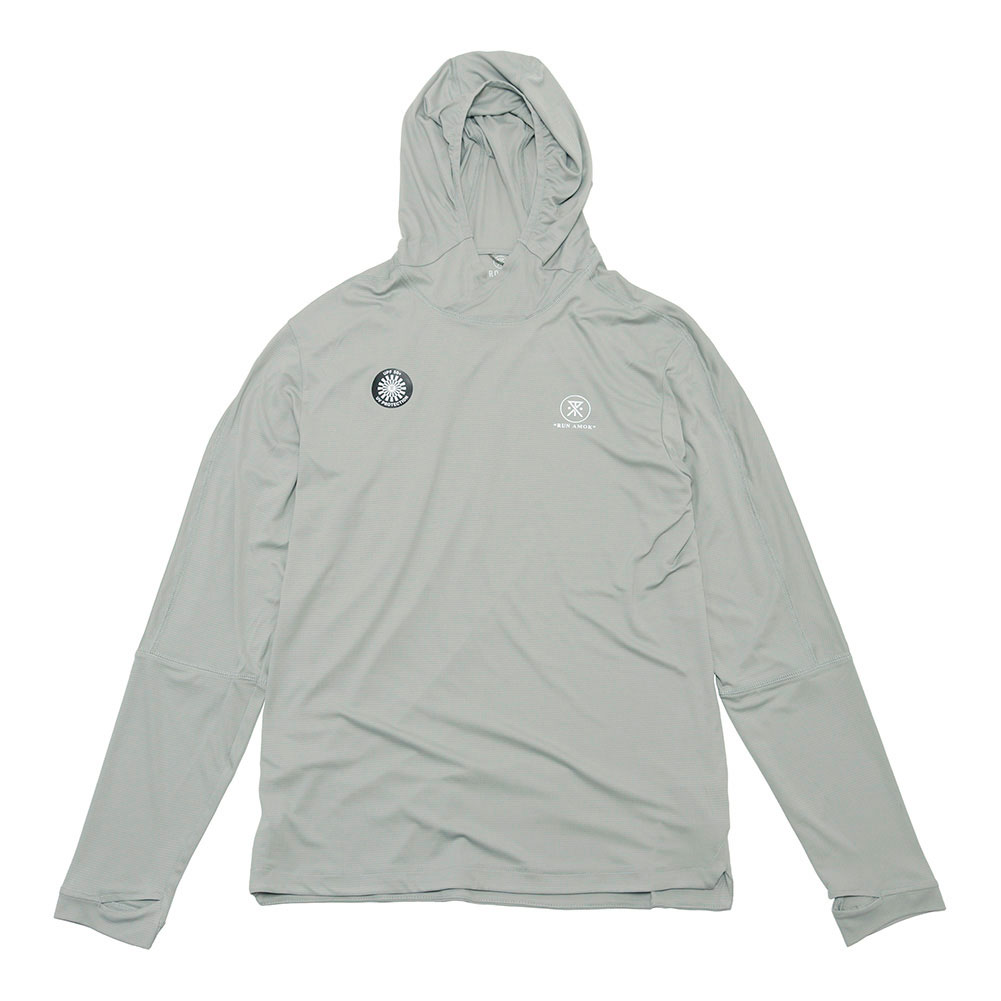 UPF50+は、衣類や繊維製品のUVカット性能を示す最高ランクの世界的基準値で、紫外線を95%〜98%以上カットし、素肌のままと比べて日焼けまでの時間を50倍以上遅らせる効果があります。肌に当たる部分はグリッド状になっており、トレイルランニングのみならず、ハイク、夏の日差しの強いシーンでも快適に過ごせる素材感に仕上がっています。フードも立体的で、サムホールもあり、リフレクタープリント等、細かなディテールにも注目です。