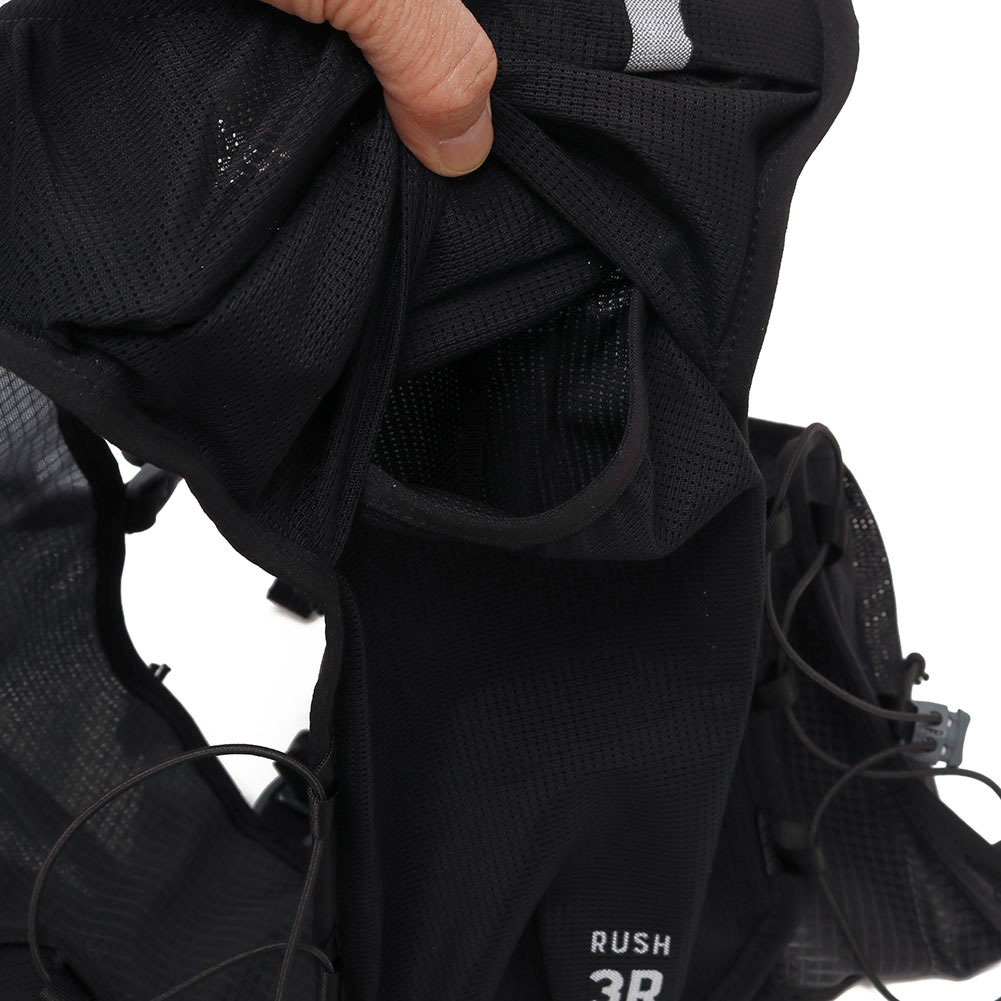 ランナーからの声をもとに、RUSHに最小容量のレーシングベストが登場。腕の可動を妨げない新設計と、激しい運動時でも熱がこもりにくい素材によって、スピードの出るショートレースに最適なモデルを開発しました。 本体生地に1wayストレッチメッシュを採用。縦方向の伸びを抑えるため荷物の揺れが軽減し、ストレスフリーの走りを実現。ストレッチ性が高いため、荷物の量に応じてパックの容量が可変します。 体に触れるハーネスと背面全体に、通気性の高いモノメッシュを採用。熱がこもりにくく、発汗量の多いレースや多湿な環境でも快適な走りをサポートします。