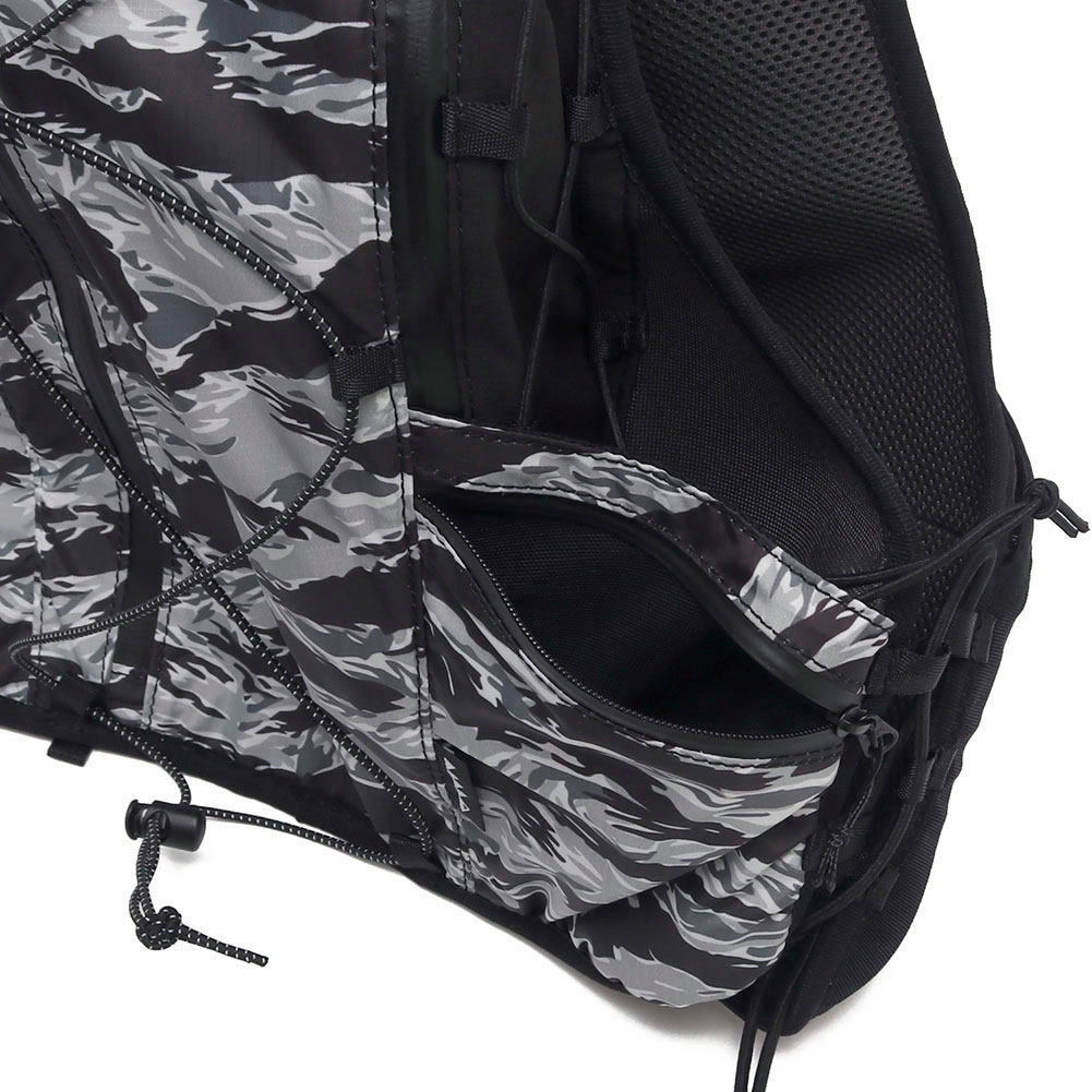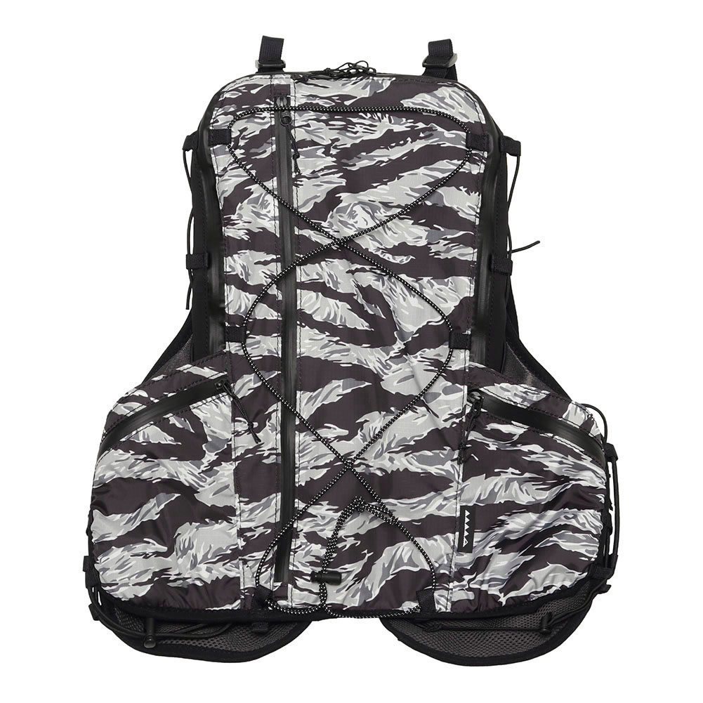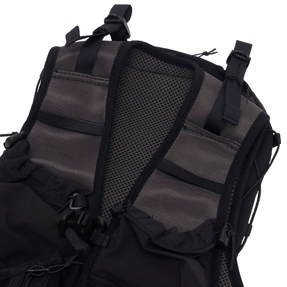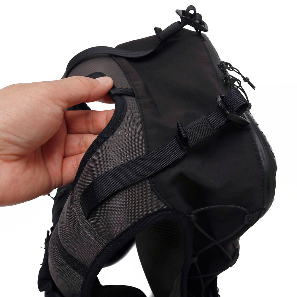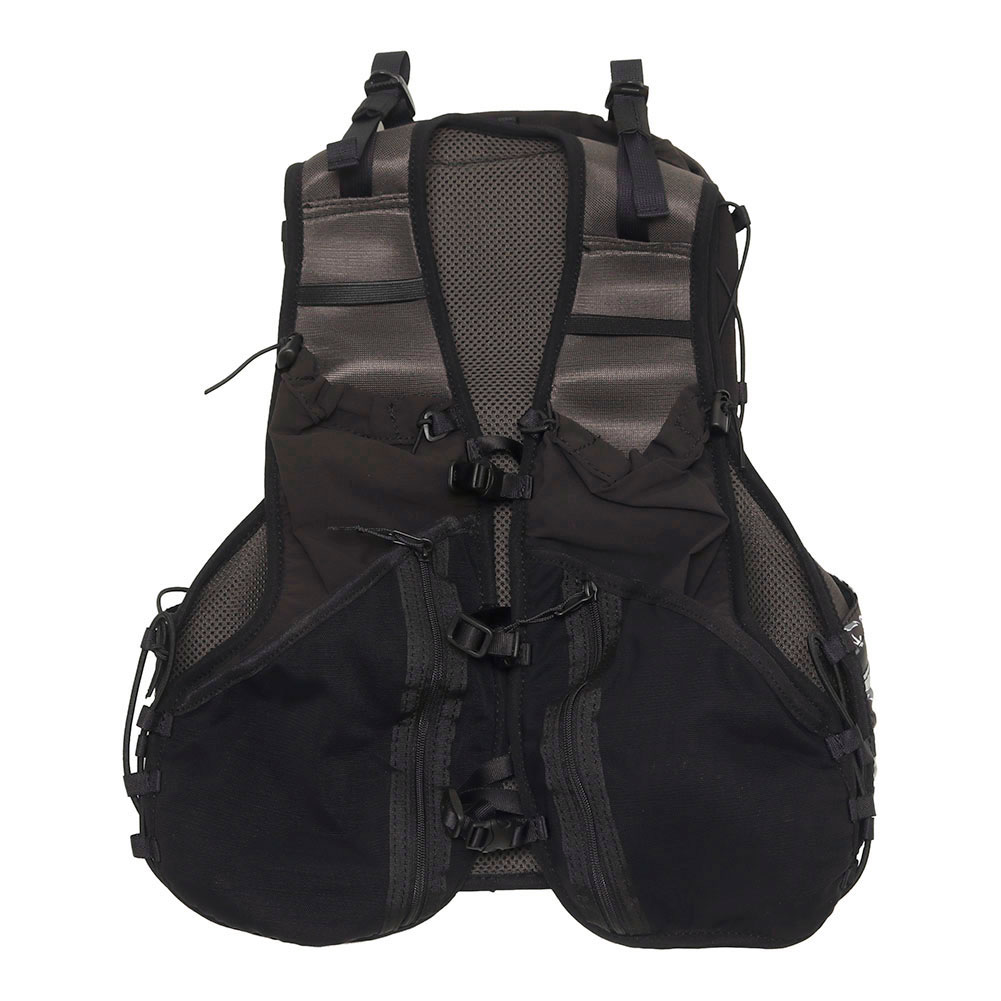 街ランからロングトレイルまで対応する機能とデザインを持つ汎用性ランニングバックパック「DUSTY」。特化していないことが特徴の DUSTY をロングレース用に最適化。変更点はハーネスの形状を見直し、フィット感を向上。ハーネスのメッシュポケットを大型化することで収納力向上。チェストストラップを固定式の 3 本にして安定したフィット感。サイドアジャスターをベルトからドローコードに変更し調整が容易にし、本体前面にドローコードを追加。