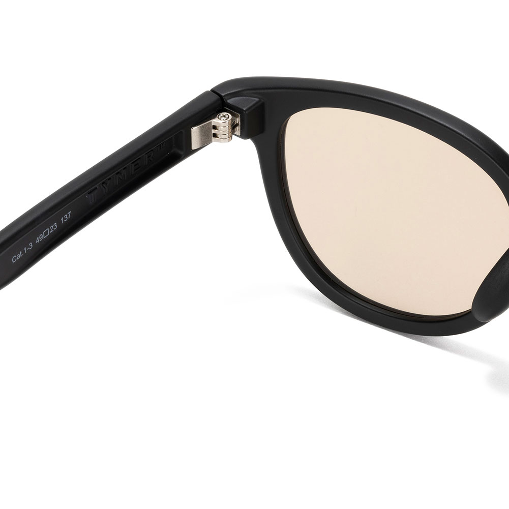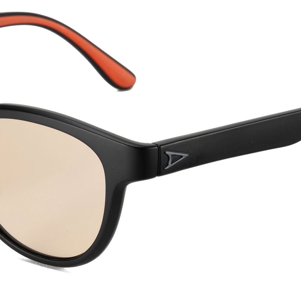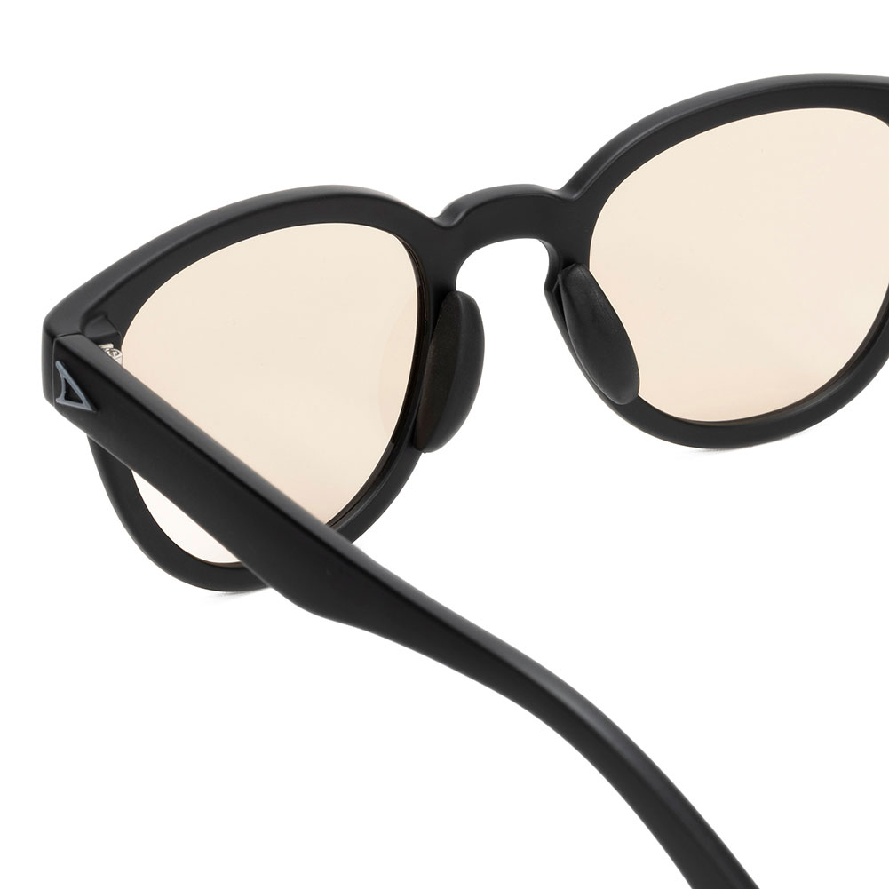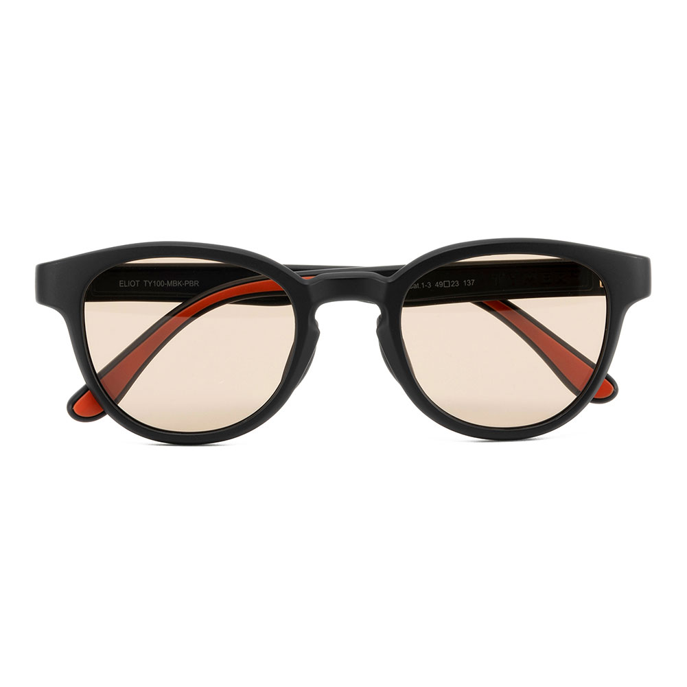 近年人気のクラシカルなボストンシェイプにより洗練された柔和な印象に仕上げられています。 絶妙なサイズ感により性別やスタイルを問わないモデルです。フレームはマットブラック、レンズは目元をブラウンで彩りつつ紫外線量により明るさが変わる調光レンズ。