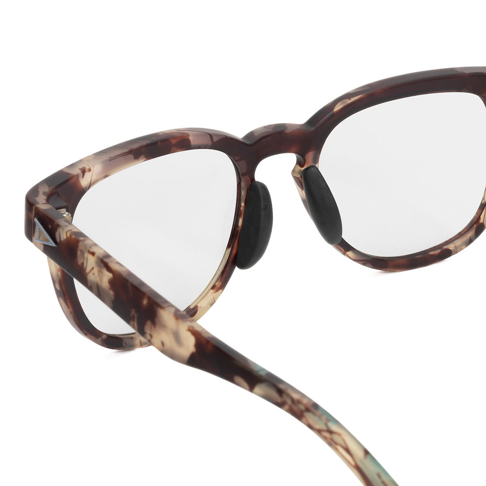 また、ノーズ部とテンプルアーム部にワイヤーフレームを入れる事で細かい調整が可能になり、軽量なインジェクションフレームながらも一人一人異なる頭の形にフィットできるよう設計されています。