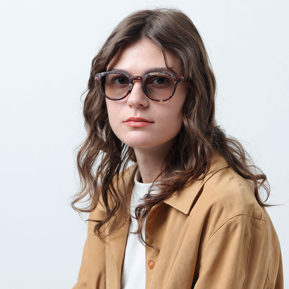 ボストンとウェリントンを掛け合わせた絶妙なシェイプはシンプルながらもモダンな仕上がりに。絶妙なサイズ感により性別やスタイルを問わないモデルです。フレームはマットダイデミ、レンズは紫外線量により明るさが変わる調光レンズ。