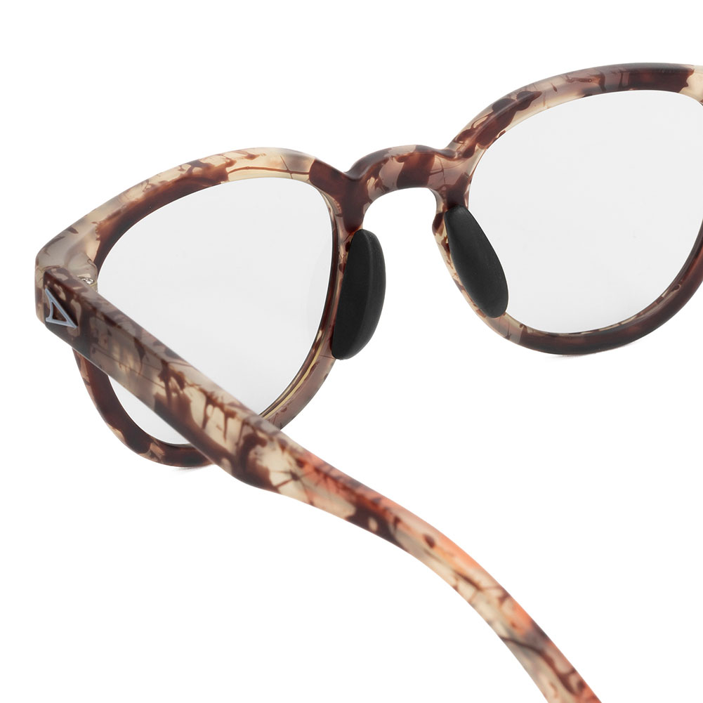 しなやかで強度の高いフレーム。フィット感と防滑性を向上させるラバーパーツ。耐久性やメンテナンス性が高い、伝統的な5枚バレルヒンジ。そして、レンズには信頼性と光学性能のバランスに優れたCR-39と超高耐久のポリカーボネート。