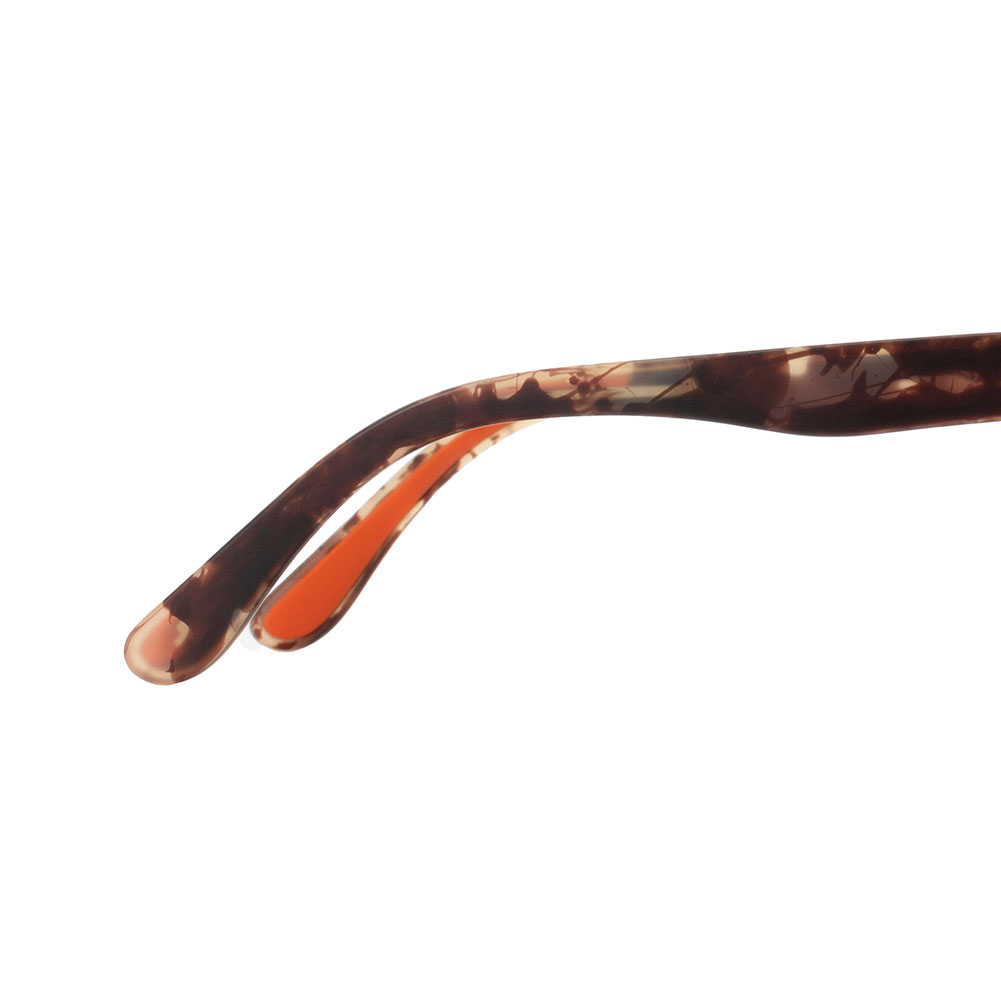 また、ノーズ部とテンプルアーム部にワイヤーフレームを入れる事で細かい調整が可能になり、軽量なインジェクションフレームながらも一人一人異なる頭の形にフィットできるよう設計されています。