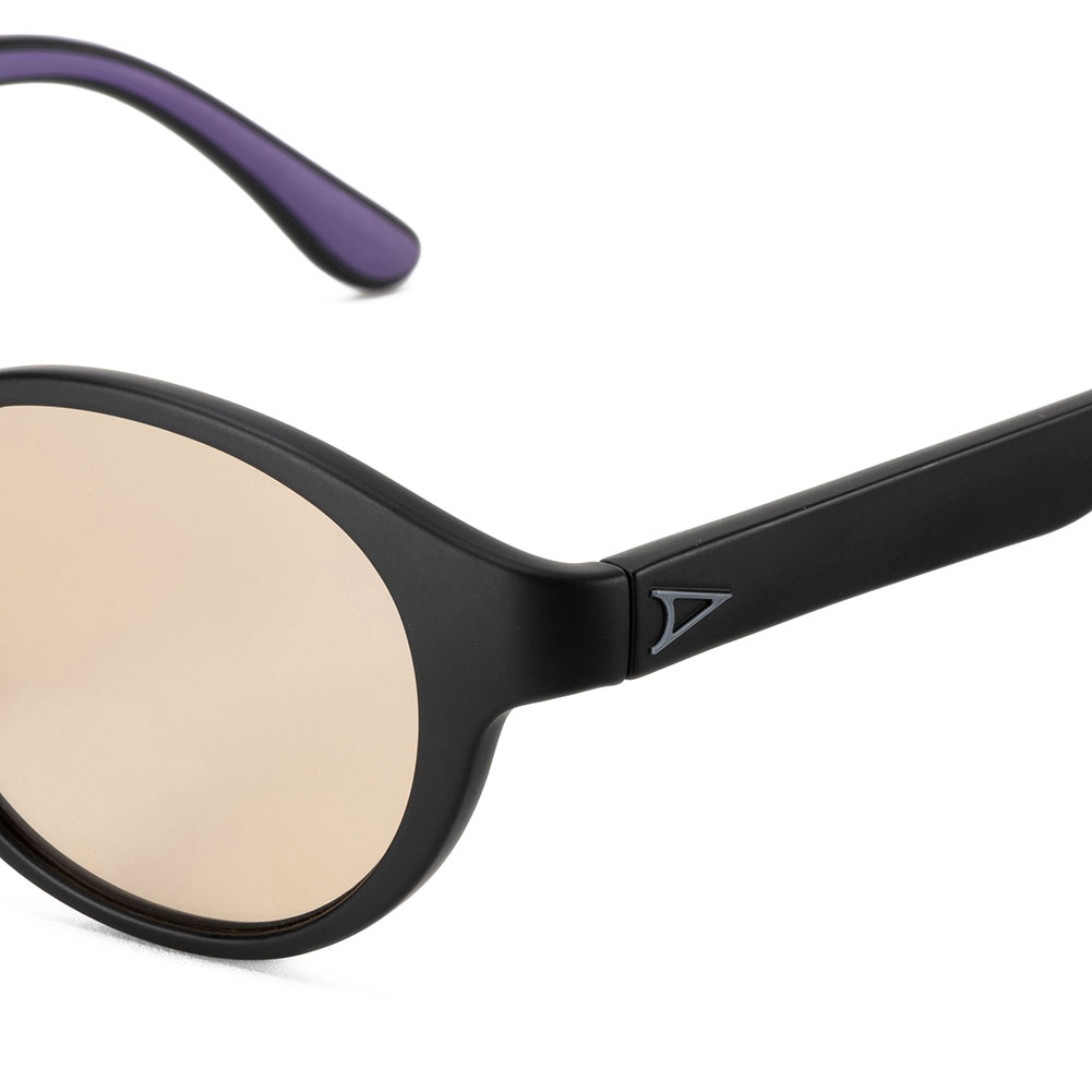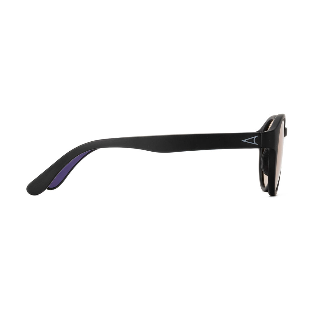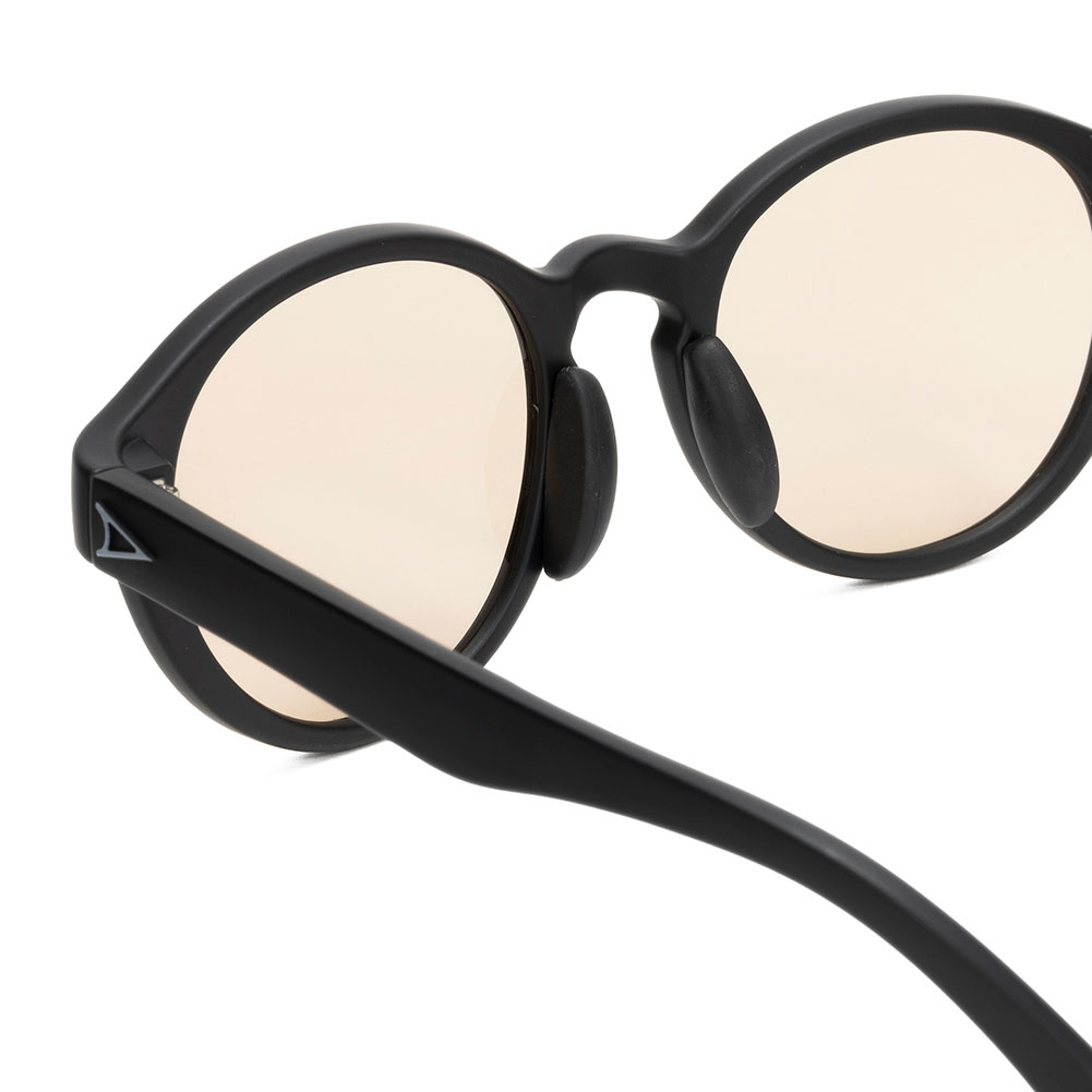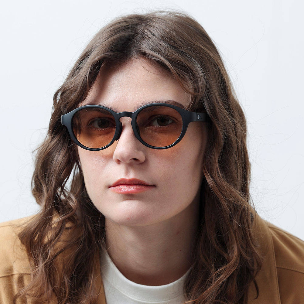 ELIOT(TY100)のボストンシェイプに比べレンズ上部にも丸みを持たせたラウンドタイプのニューフレーム。フレーム自体も細身に仕上げてエッジを抑えたプレーンな印象で男女問わず、スポーツ・ファッションにもコーディネートしやすいデザイン。ノーズ幅も全モデル中一番Narrowに設定しているので鼻梁が高くない方にもフィットしやすいモデルです。フレームはマットブラック、レンズは目元をブラウンで彩りつつ、紫外線量により明るさが変わる調光レンズ。