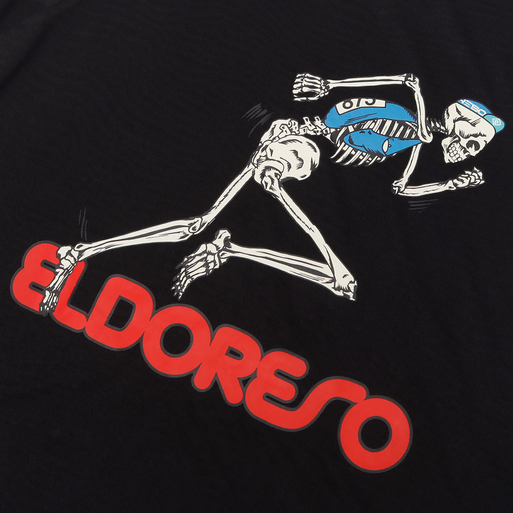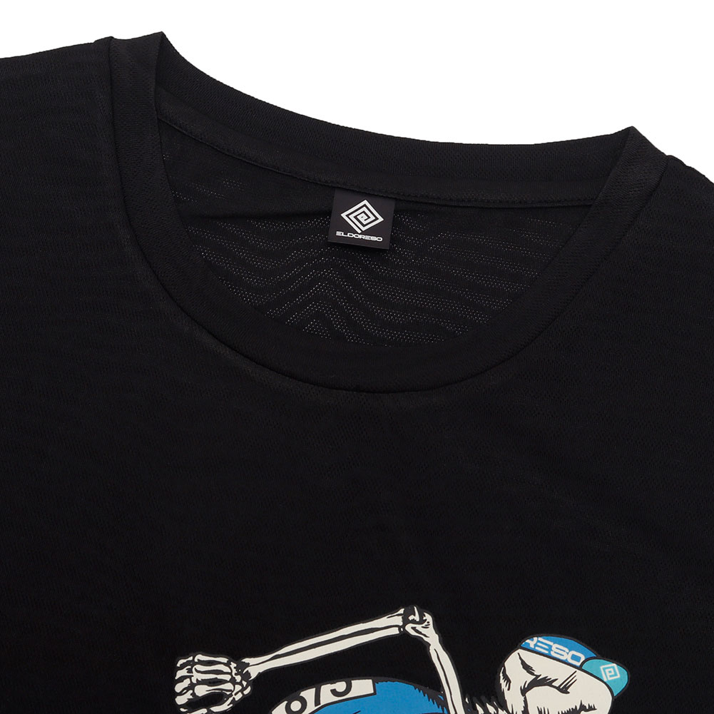 ランナーの一瞬の動きを切り取り、ブランドが得意とするストリートファッションのエッセンスを加えてランニングウェアのデザインへ落とし込んだ「ボーンマン」シリーズのランニングシャツです。エルドレッソでは幾種もの機能素材をデザイナー自ら実践でのテストを重ね、商品に採用する生地を選定しています。今回は吸水速乾性を持ちながらも風合いの良い、ポリエステル製のメッシュ素材を採用。生地の凹凸により肌への接地面を減らしたメッシュ素材を用いる事により、アクティビティ時により快適な着心地を実現しました。表面に光沢感の無い質感の生地をセレクトしているので、見た目にスポーツウェア然としておらず、アクティビティのみならずタウンユースにも適した表情に。クラシックなボックスシルエットのパターンを用い、過度なスポーツ感を抑えたビジュアルに仕上げました。機能面とファッション性を兼ね備えたELDORESOならではのデザインのランニングTシャツは、スポーツシーンからタウンユースまで、様々なシーンに馴染みの良いプロダクトとなっています。