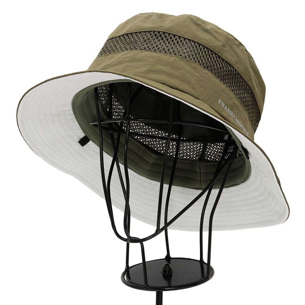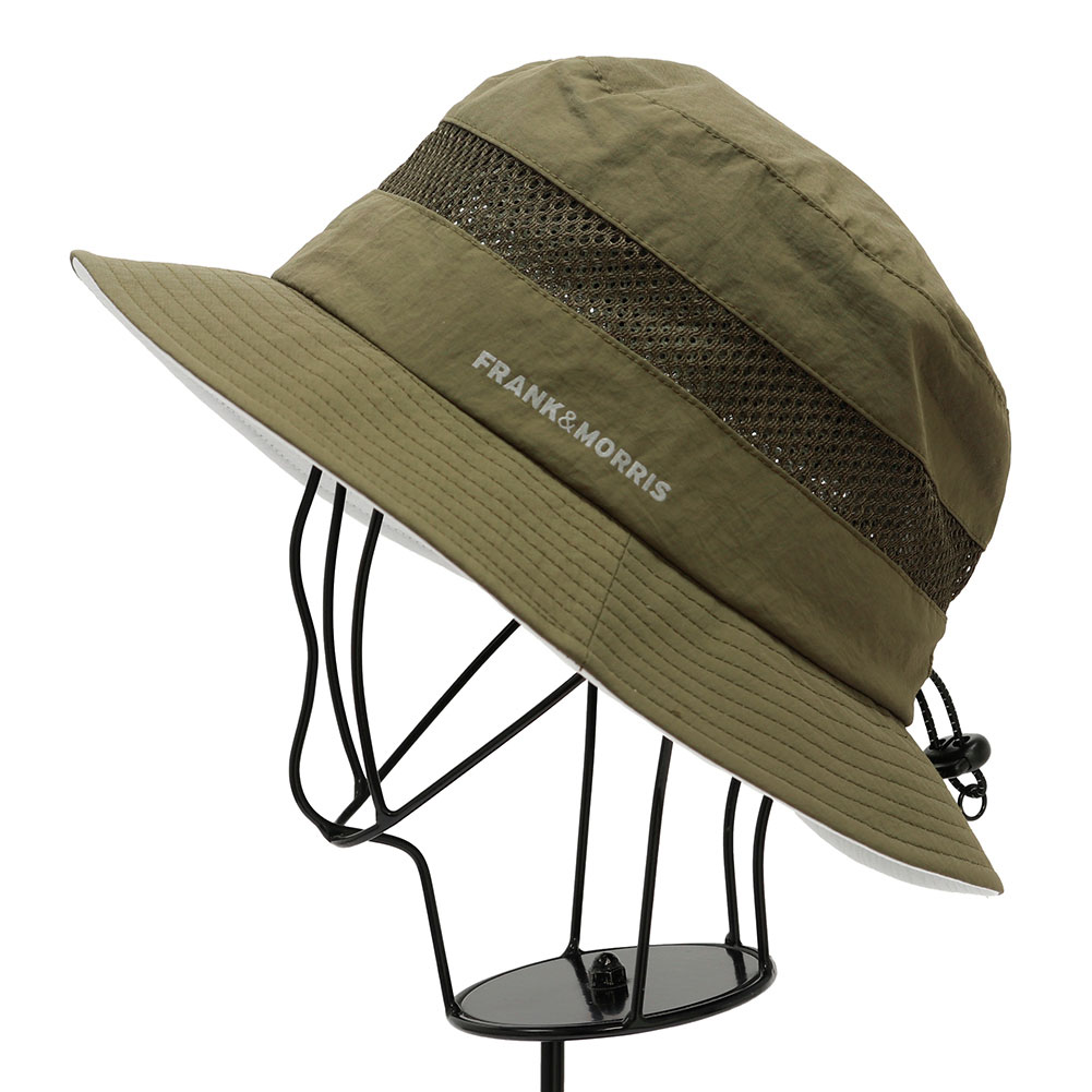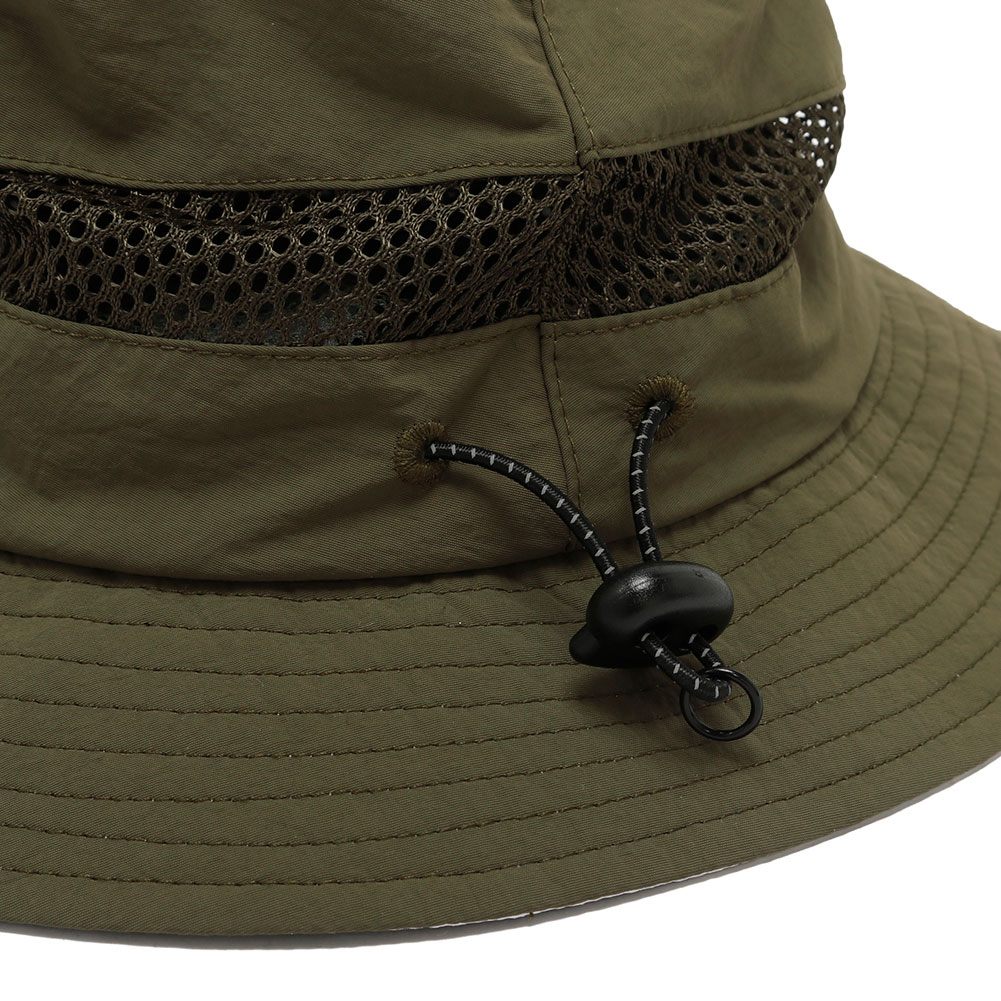 サイズアジャストのドローコードが付属されブラッシュアップしたPARASOL HAT2。厳しい日差しに備え1クラウン部に日傘と同様の遮光遮熱素材を使用した軽量ハット。熱や紫外線から肌を守りつつ、サイドにぐるりと巻いたメッシュの帯が通気性を確保。ワイヤーは使用しておりません。折りたたんでポケットなどに収納化。メッシュ生地を使用しているため、洗濯の際は、必ずネットのご使用をお願いします。乾燥機のご使用はおやめください。