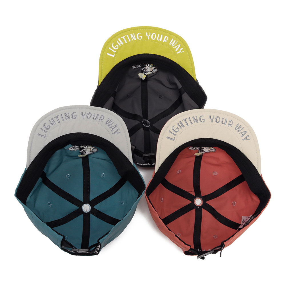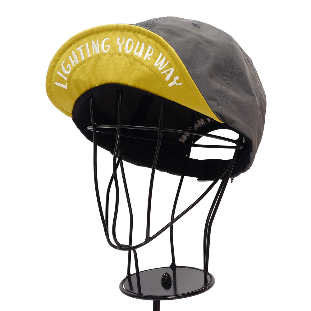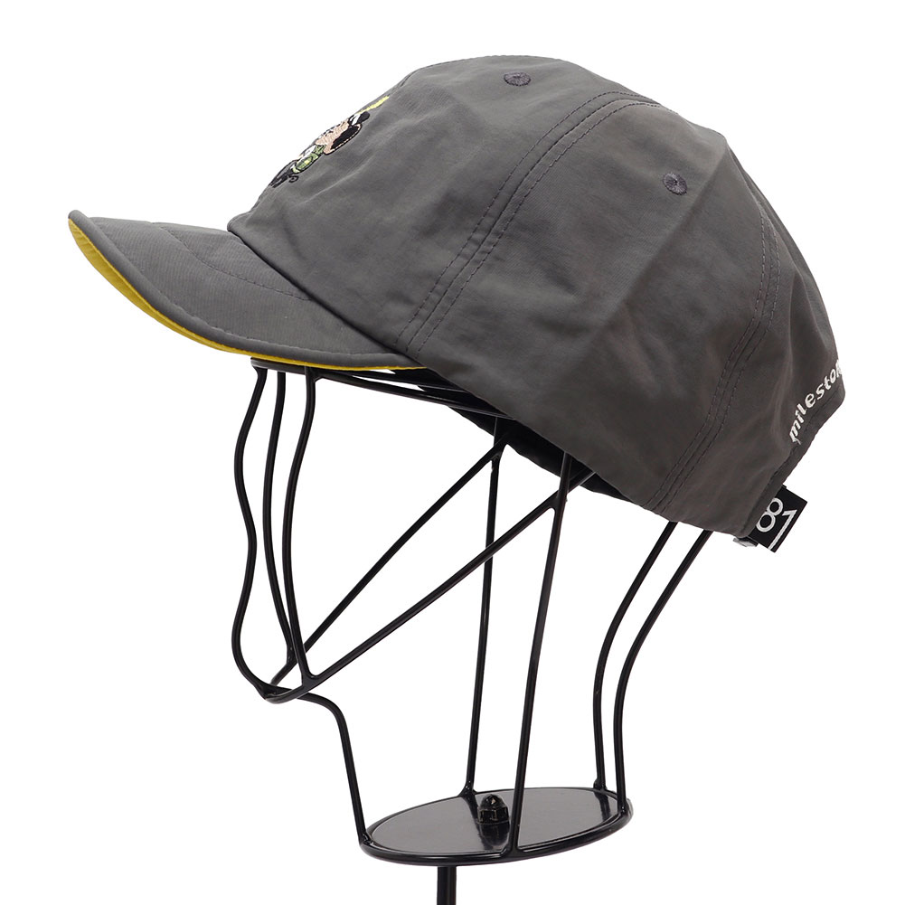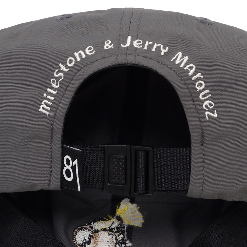 毎年、ご好評頂いている『milestone × Jerry Marquez コラボシリーズキャップ』。今回はmilestoneオリジナルキャップ『MSC-022』シリーズの形状(少しかぶりが深いもの)を採用しました。後ろはストラップなので、強い風が吹いても飛ばないように調整が可能です。頭頂部のチョボを省いている為、ヘルメット着用時にでも快適に被れる仕様になっています。ツバ裏のスローガン、"LIGHTING YOUR WAY"のロゴも、ジェリー鵜飼さんオリジナルフォントに変更になっており、キャップの後ろには、“milestone & Jerry Marquez”の刺繍があしらわれており、大変豪華な仕上がりです。