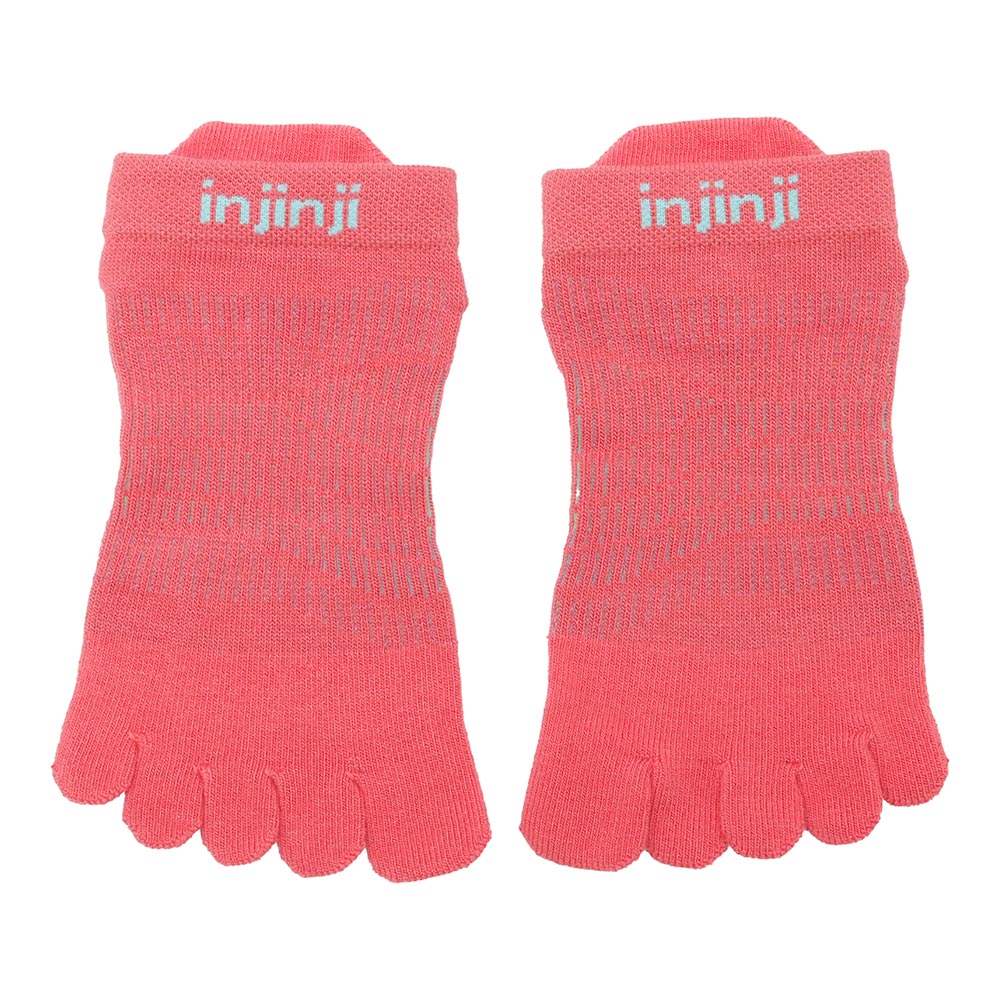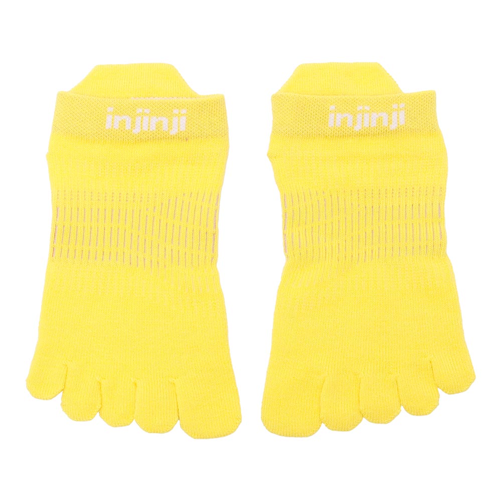 インジンジの5本指ソックスはランニングに最適な靴下です。独立したトゥースリーブ形状により5本の指は解放され、走行時のグリップ力を高めバランス力を向上させます。さらに、指と指とが擦れにくいのでランニング時の安心感にも繋がり、汗を効率よく吸収蒸散させることで肌面をドライな状況に保ちます。素材には耐摩耗性に優れる生地を採用。5本指ソックスの弱点である穴あきに対する耐久性を格段にアップさせました。