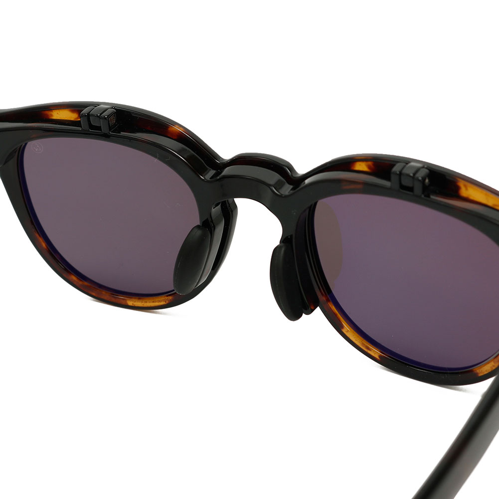 ブランドを代表する「LEIFER」にフリップアップモデルが登場しました。跳ね上げ式サングラス特有のフロント部分の跳ね上がりを防止するマグネット機構も備え、滑りを防止するテンプルラバーや稼働するノーズパットが採用されているのでズレ難くアウトドアやスポーツの際にもオススメです。もちろんサングラスレンズを外して度付きレンズに交換することも可能です。