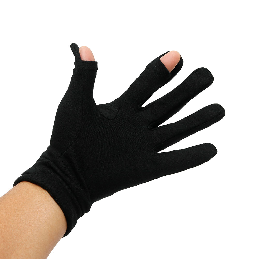 手囲い(“左手の生命線の始点”と、“小指の付け根のシワと手首の付け根のシワを結んだときに手首の付け根のシワのほうから1/3の距離にある点”を通って、ぐるりと手のまわりを一周した長さ) XS:19-20cm S:21-22cm M:23-24cm L:25-26cm