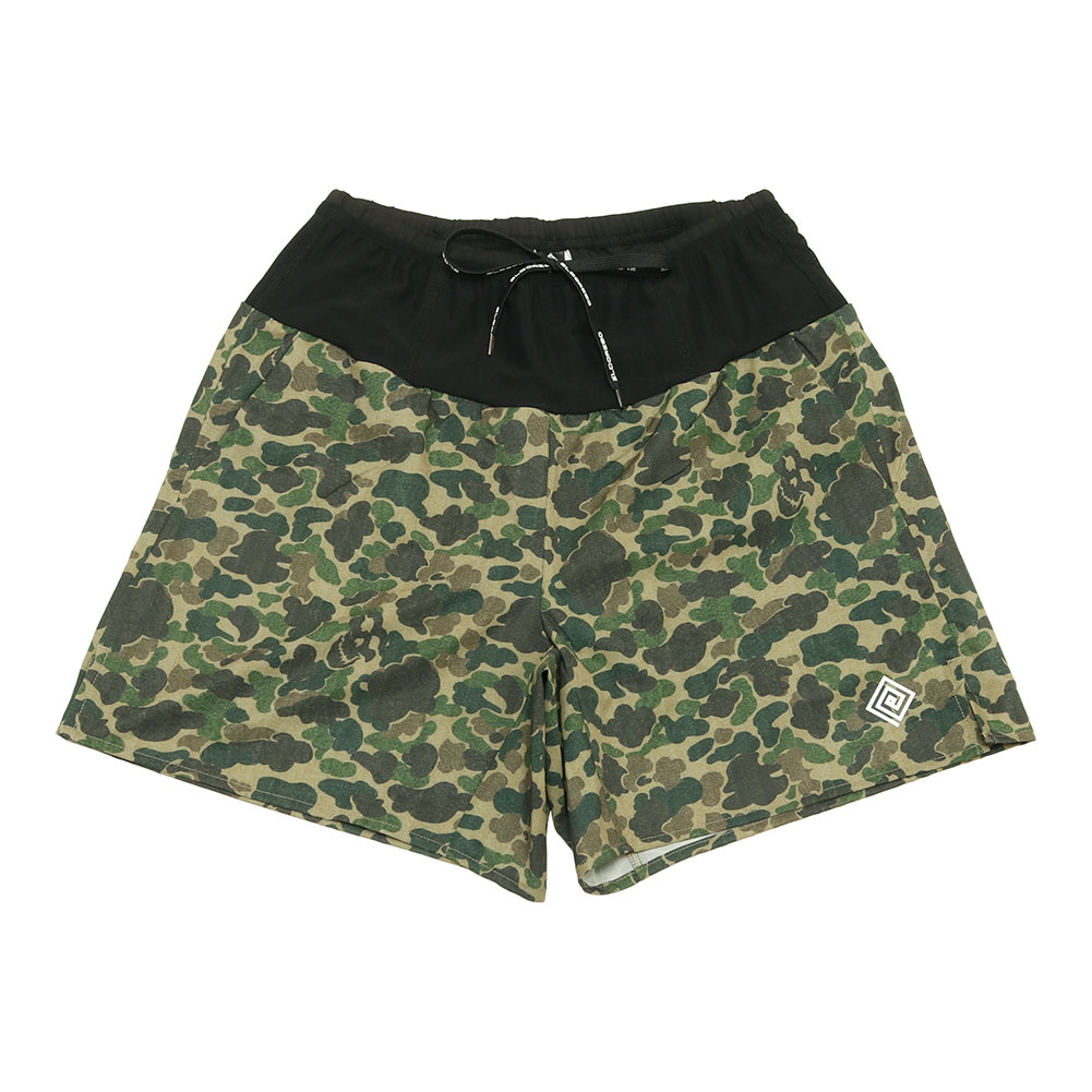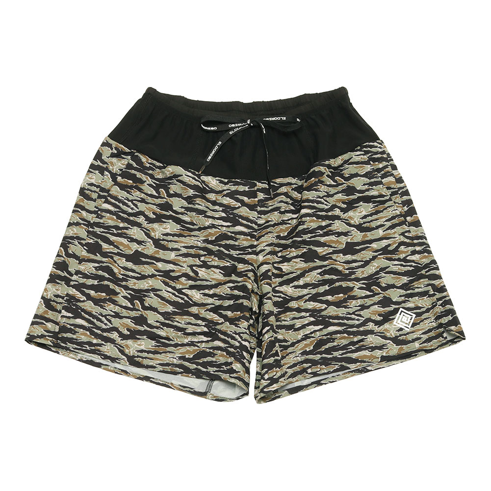 TANATEX社にブランドで別注をしたストレッチ性を持つ高機能素材に、ELDORESOで人気の高い定番グラフィックをプリントしたオリジナルテキスタイルを贅沢に使用し仕立てた、インナー付きのランニングショーツです。ウエスト部をフィット感の良いポリエステルジャージー素材に切り替え、その上にぐるりと360°に6つのメッシュポケットを搭載。更に両サイドにもポケットを配した機能的なデザインのショートパンツです。幅広いスタイルのランナーに取り入れやすいよう長さに拘って全体の長さや股下を設定し、コンパクトながらに短すぎずコーディネートしやすいレングスのショーツとなりました。