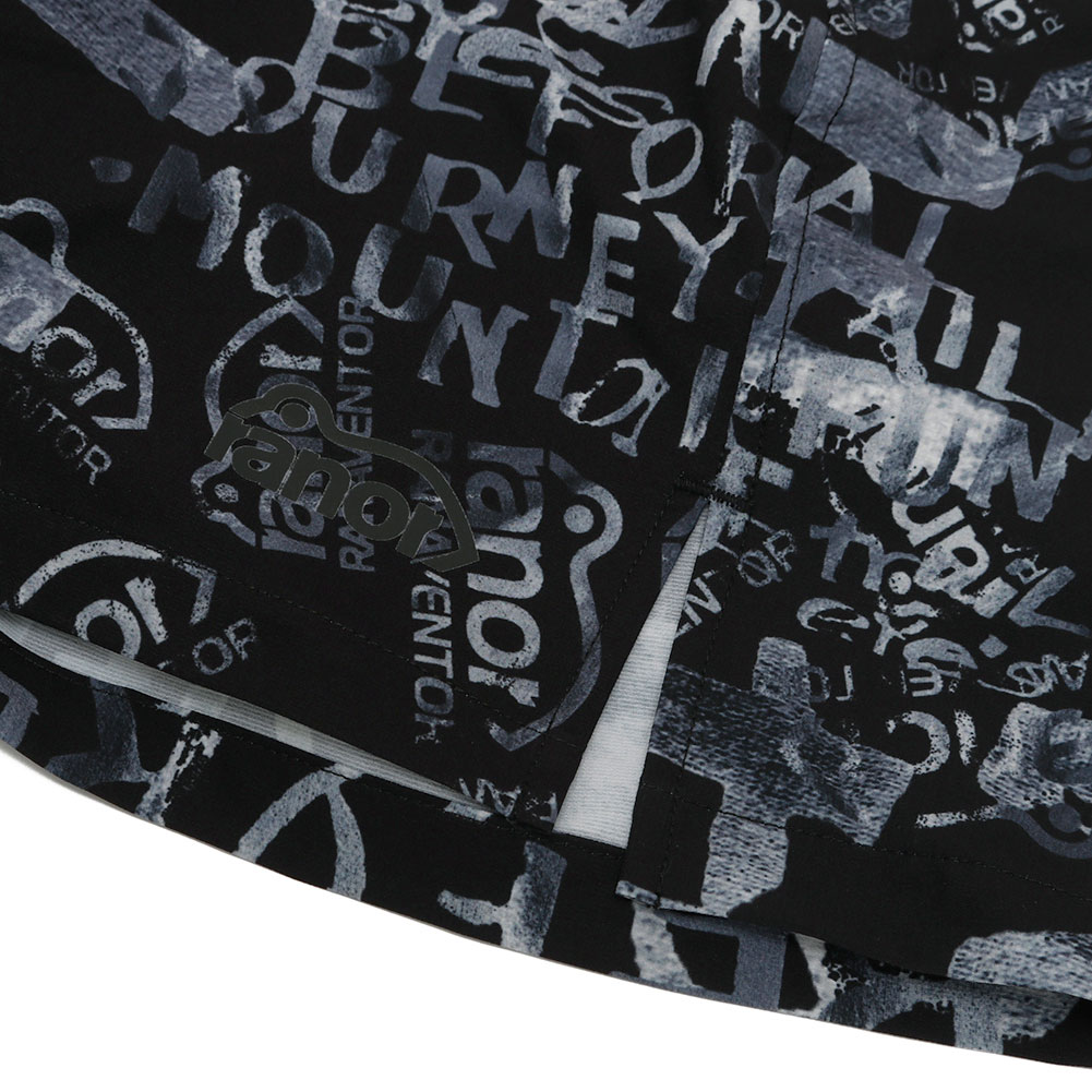 ranorのロゴや文字を含んだ総柄仕様のトランクスになります。文字の大きさも不揃いながらのテキスタイルに仕上がっており、モチベーションを上げてくれる1枚と言えます。ユニセックスなので男女問わずお使い頂けます。