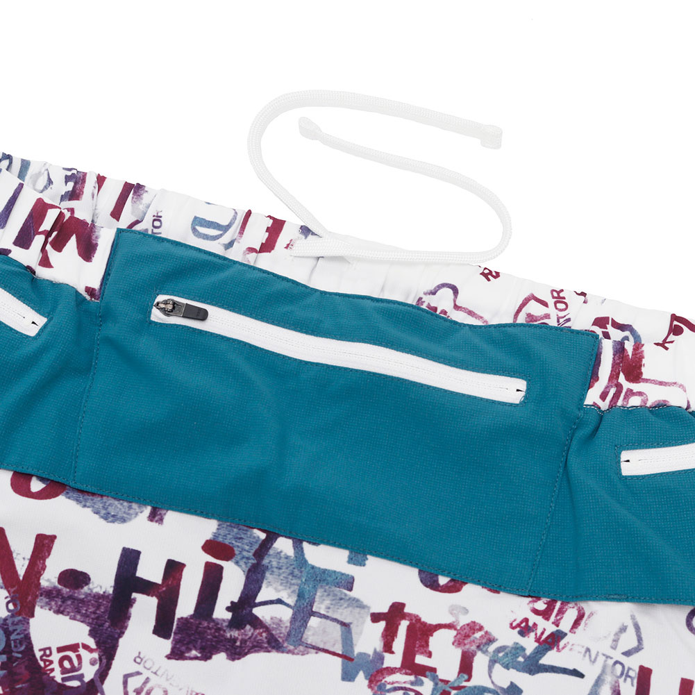 背面にはスマートフォン収納ポケットと両サイドにジップ付きポケットを装備。また、前後差のある着丈は、トレイルの登りの際に気になりづらいよう、後ろ身頃をやや長く設定。ボクサータイプのインナータイツには伸縮性の高いカットソー生地をセレクトし、締め付け感を感じづらいストレスフリーな仕様となっています。