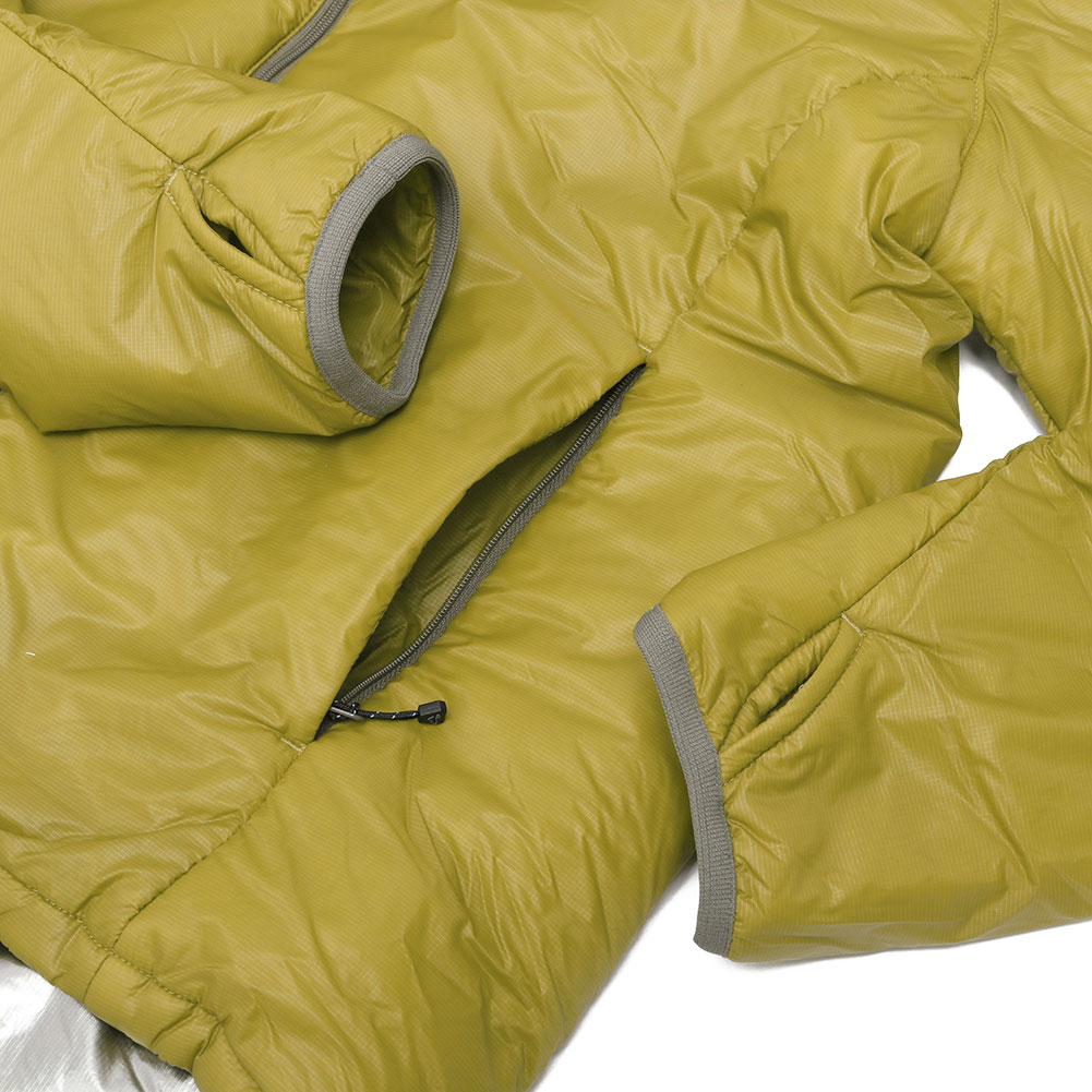 とにかく軽量で保温性抜群アウターはデイリーユースに加え、トレイルランニングのレース前後・レース中のインサレーションジャケットとして、エイドでの停滞時に。もちろん選手サポートの際の強い味方として。登山やファストパッキングにおける小屋やテント場にも使える、保温性・透湿性・耐久性・軽量性・コンパクト性など全てにおいて妥協しない防寒着が、 milestoneより遂に着弾!表地は10Dミニリップストップナイロンを使用し、裏地はチタンを定着させるチタンスパッタリングという技術を使用し、高い熱効率を発揮。中綿は米軍でも採用されているClimashield®APEXを使用。左ポケットに収納可能なポケッタブル仕様、ポケットの裏地にニット素材を採用し枕としても使用可能です。