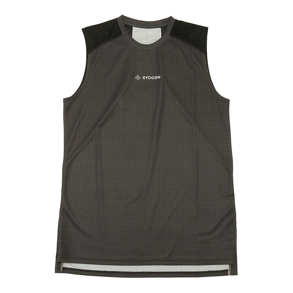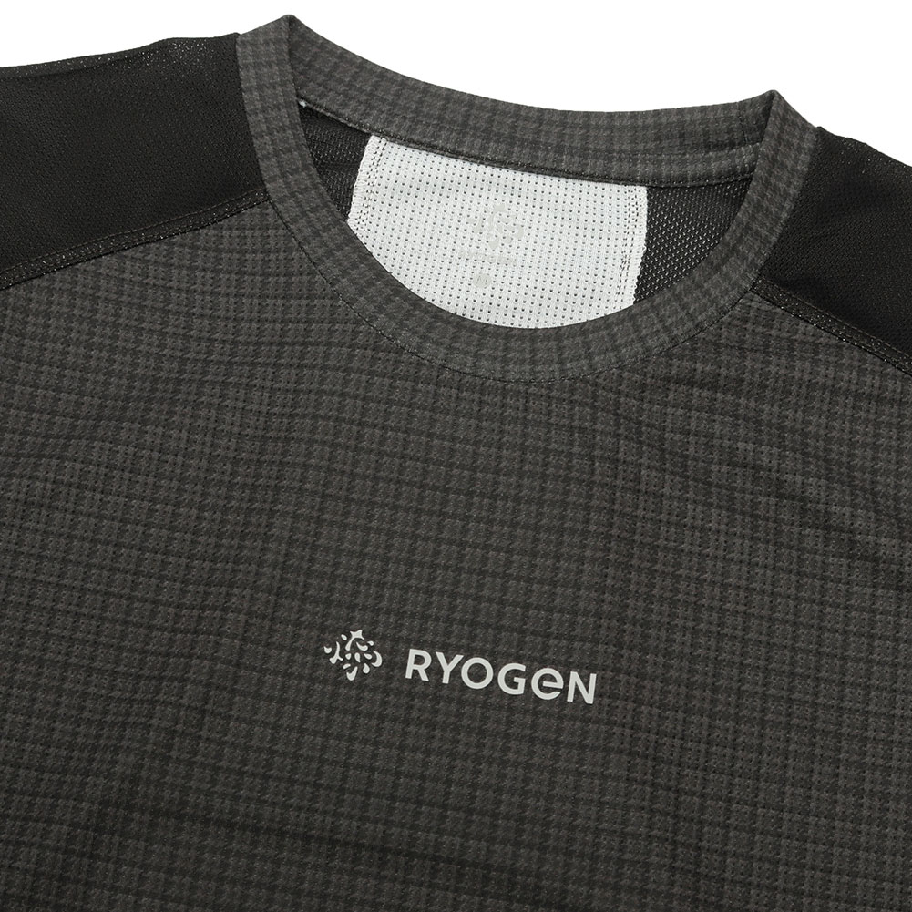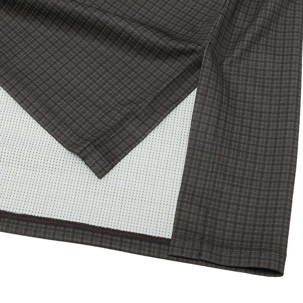トラディッショナルな雰囲気醸し出すGUNCLUBCHECKを大胆に全面昇華プリントした意欲作。メインファブリックにはCOOLMAX®Ecoを使用した吸水速乾素材を採用し、見た目とは相反し、驚くほどの速乾性能と汗をかいてもサラリとした着心地を実現。肩甲骨あたりから背面にかけて汗の溜まる箇所をメッシュで切り替えることにより、より快適な着心地を実現。裾スリット仕様により、風に靡く様がなんとも美しくRYOGEN定番のディテールとなっている。