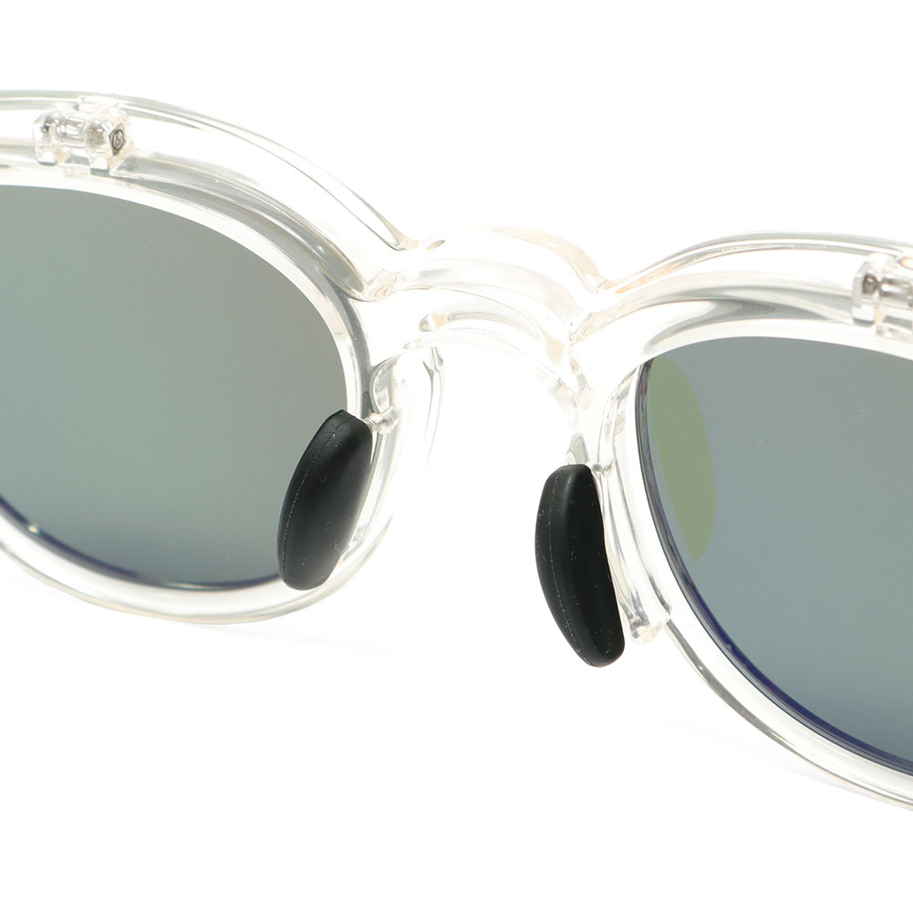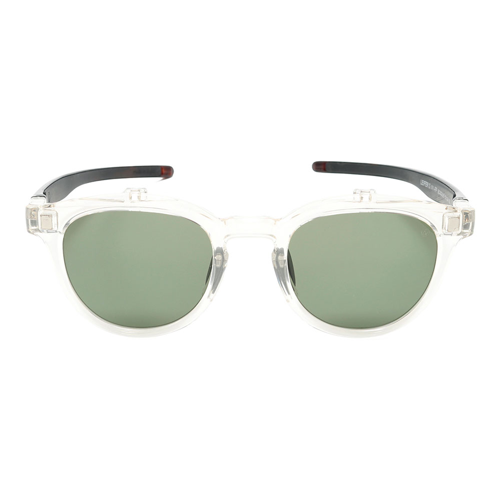 ブランドを代表する「LEIFER」にフリップアップモデルが登場しました。跳ね上げ式サングラス特有のフロント部分の跳ね上がりを防止するマグネット機構も備え、滑りを防止するテンプルラバーや稼働するノーズパットが採用されているのでズレ難くアウトドアやスポーツの際にもオススメです。もちろんサングラスレンズを外して度付きレンズに交換することも可能です。