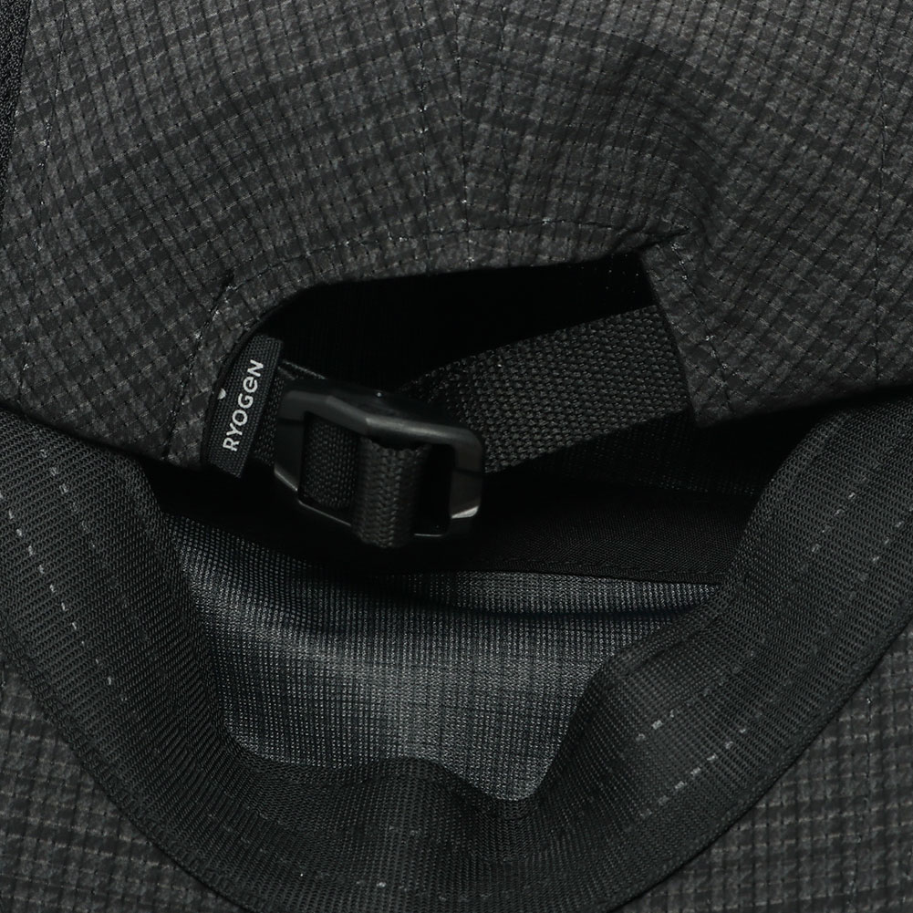RYOGENの定番となったORIGIN JETCAP。更なる被り心地を追求した末、0.5cm深くすることで急な強風にも対応し幅広い客層にも受け入れやすく、新たにver.1.5としてリリース。ツバの長さはスポーツメーカーのように長すぎず、かといってサイクルキャップやトレランキャップのように跳ね上げれる位短い訳でもない、スピードを出して飛んでいかない、風の抵抗も受けにくい絶妙な長さ。一番のこだわりポイントはサイズ調整アジャスター。片側がゴムになっており、伸縮性があるため頭によりフィットします。走りながらも片手でサイズ調整可能、帽子の着脱も可能です。