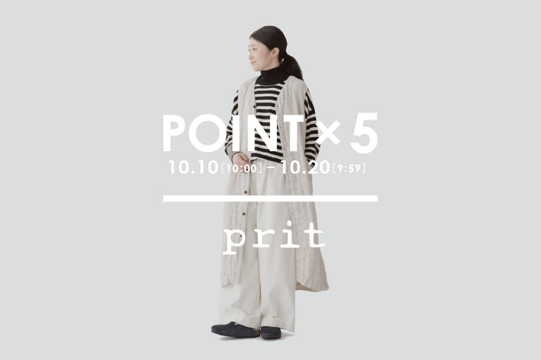 実店舗で開催するprit[プリット]のPOP UP STOREと連動して、本店オンラインストアでもprit×POINT5倍フェアを開催します♪