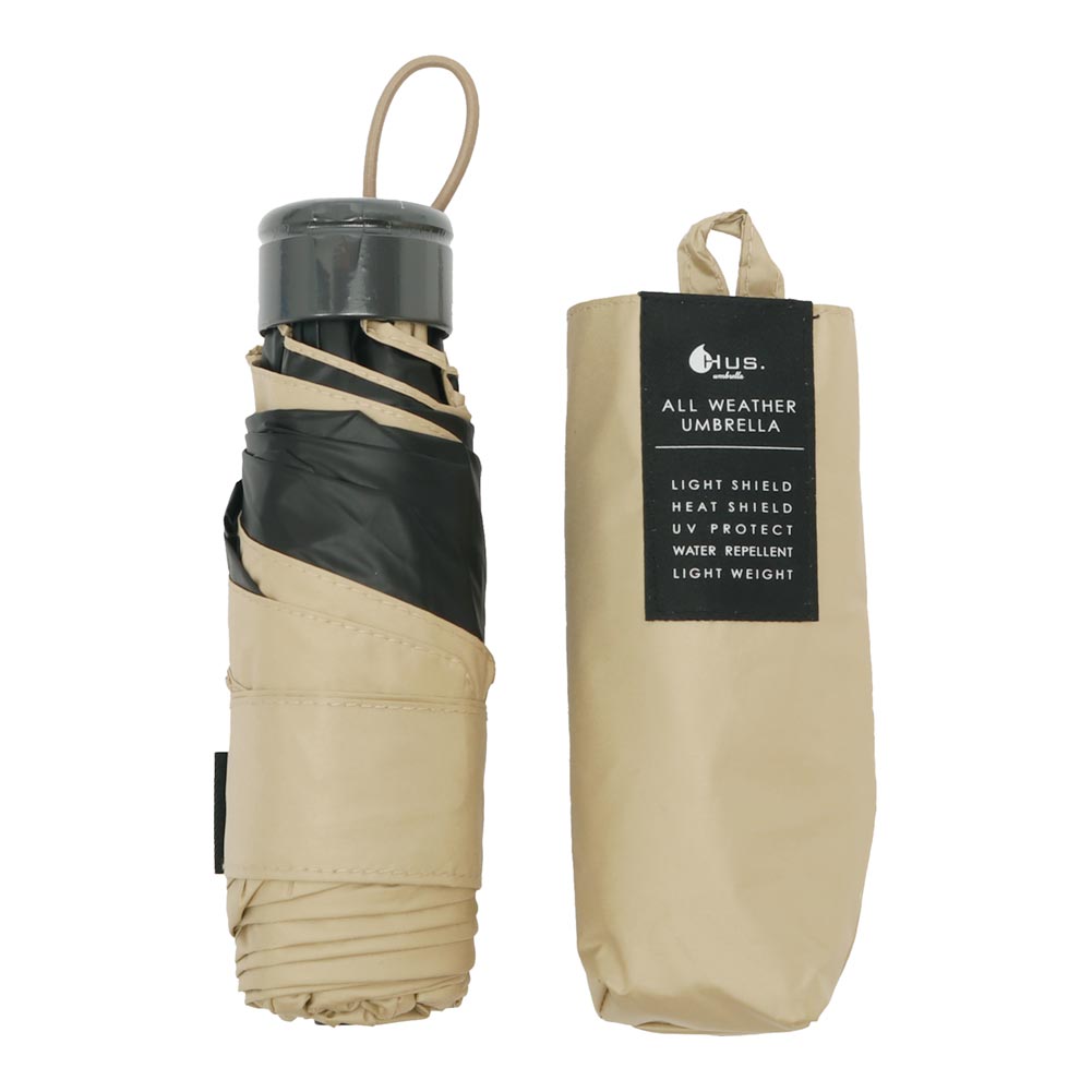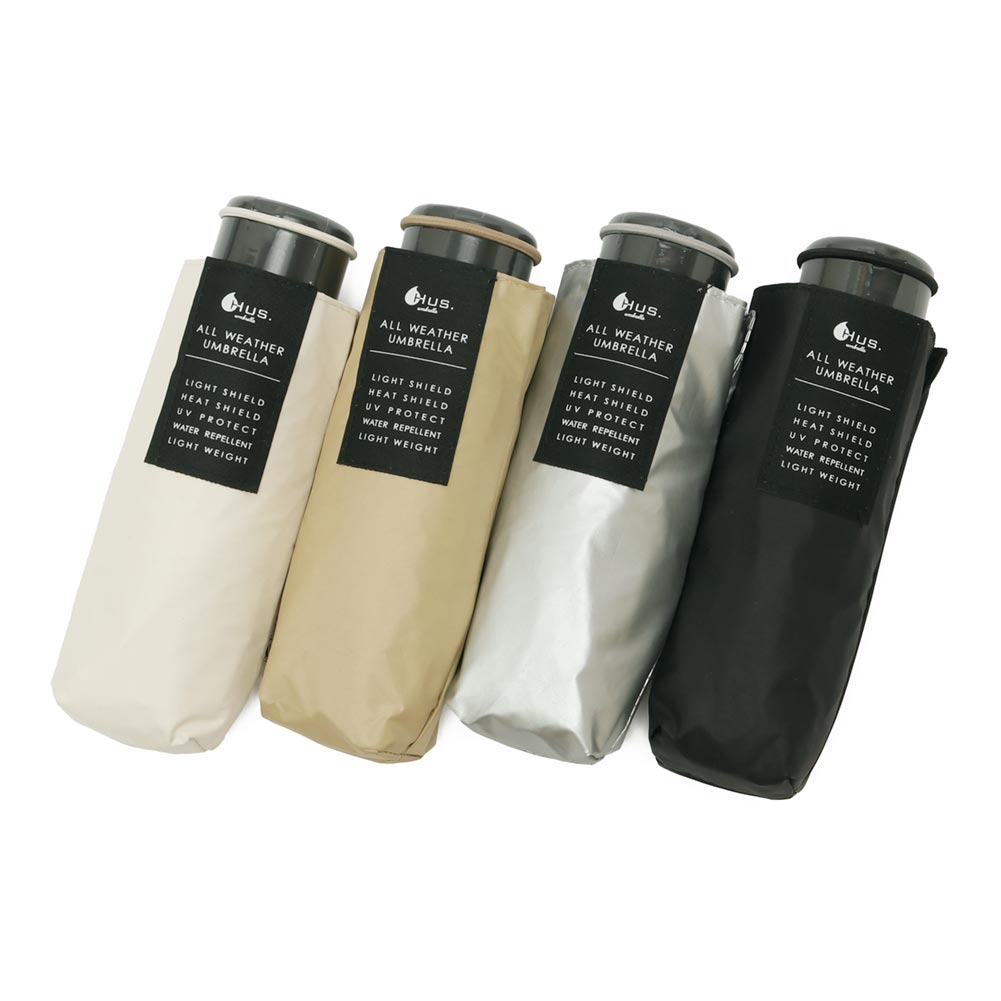 HUS.のオールウェザーシリーズは、紫外線や暑さ対策にはもちろん、急な雨や雪にも1本で対応できる手のひらサイズの晴雨兼用折りたたみ傘。生地裏面のコーティングにより、遮光率・UVカット率は99.9%以上で、遮熱効果も期待できます。カバンに入れっぱなしでも気にならないほど軽量なので、男女問わず毎日の持ち歩き用にも最適です。