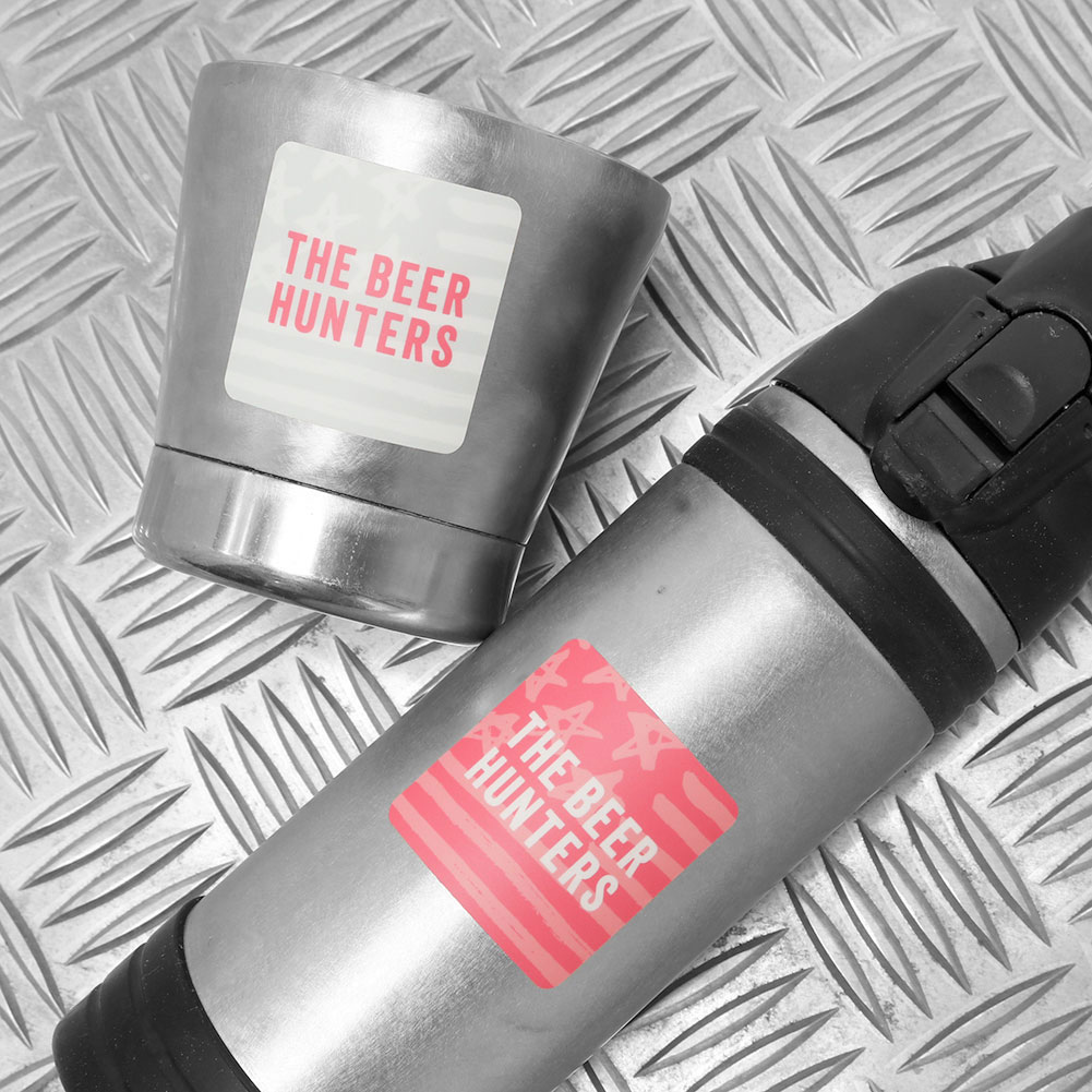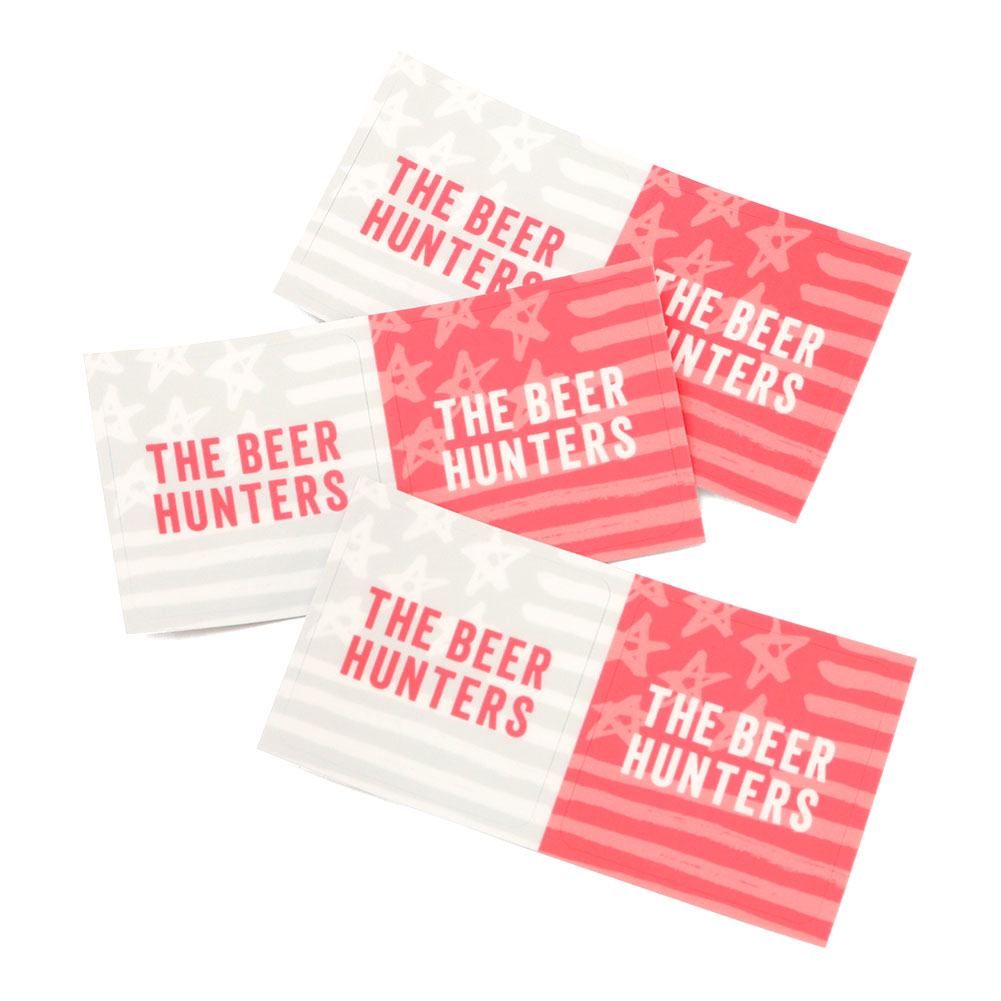 クラフトビールをこよなく愛するビアハンターたちのために製作した「THE BEER HUNTERS」ステッカー。筆書きストライプ&スター柄にHUNTER PINKが映えまくります。ステッカーは耐水性・耐熱性ともに優れたポリエステルを素材とした光沢のない専用紙で屋外でも使用できます。3枚セット販売です。