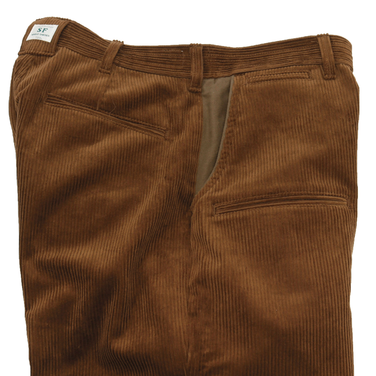 9Wのズシリとした太畝コーデュロイを使用したWheel Barrowパンツ冬仕様。ポケット入り口はモールスキン生地を使用し、フロントには使用頻度の高い両玉縁ポケットが付属。シンプルながら本当に使い勝手の良いボトムスと言えます。生地違いで数本所有したくなるアイテムです。シューズとも相性良いコーデュロイカラーを是非お試し下さい。
