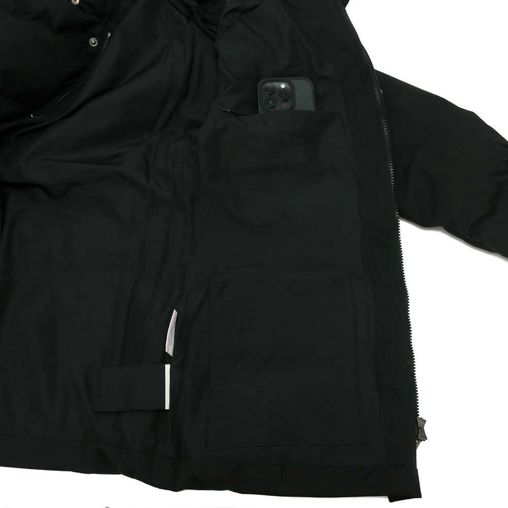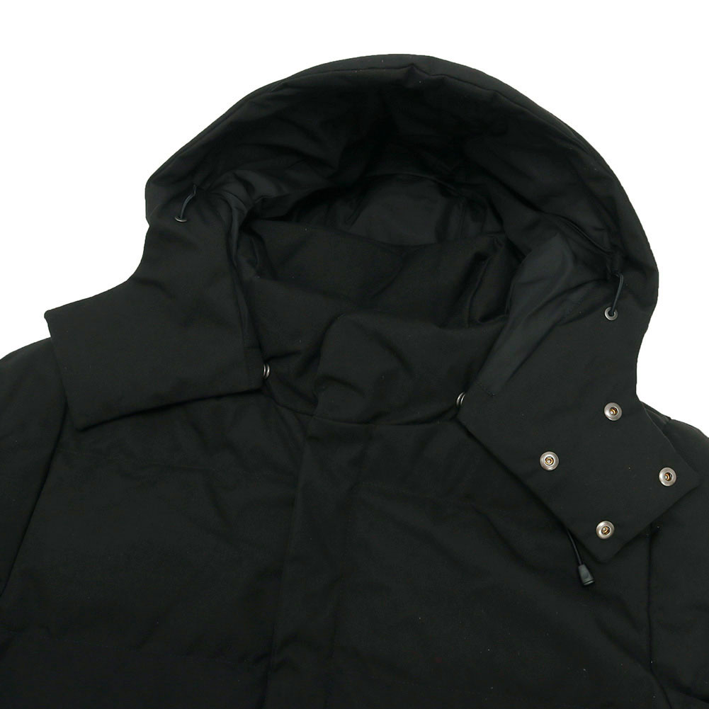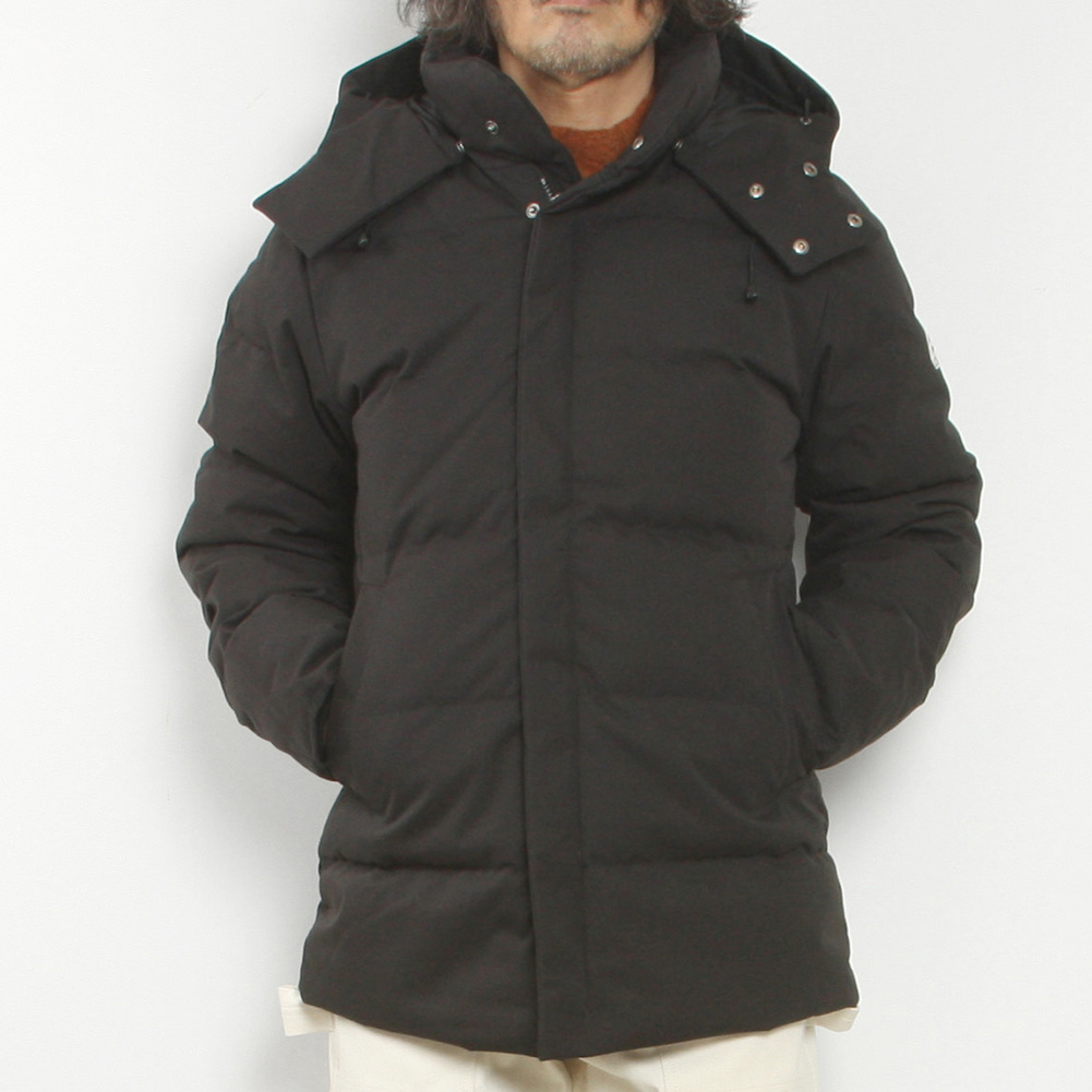 ミドルレングスでビジネスシーンでも着用できる万能アウターの「ベルフォール」は、高密度に織られたポリエステルのギャバジンにキルトステッチを施したシンプルなデザインのジャケットです。フロントボタンは表から隠れて見えない仕様で、程良い高さのスタンドカラーに着脱可能なフードを備えています。また、重ね着をした際にもたつかない、日本人の体型にもフィットしやすいサイズ感が魅力です。全体的にダウンのボリュームはやや抑えてはいますが、フリースライニングのフロントポケットや、袖口には冷気の侵入を防ぐ為のリブも装備しているので、防寒性能は高いレベルをキープしています。