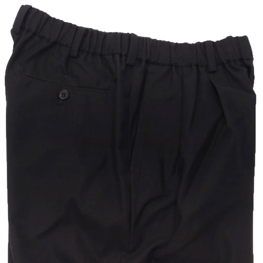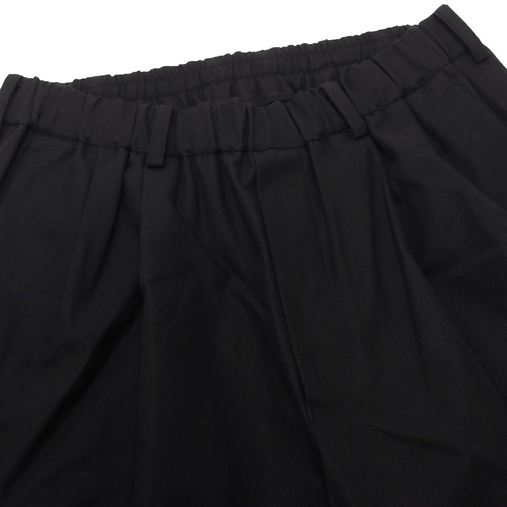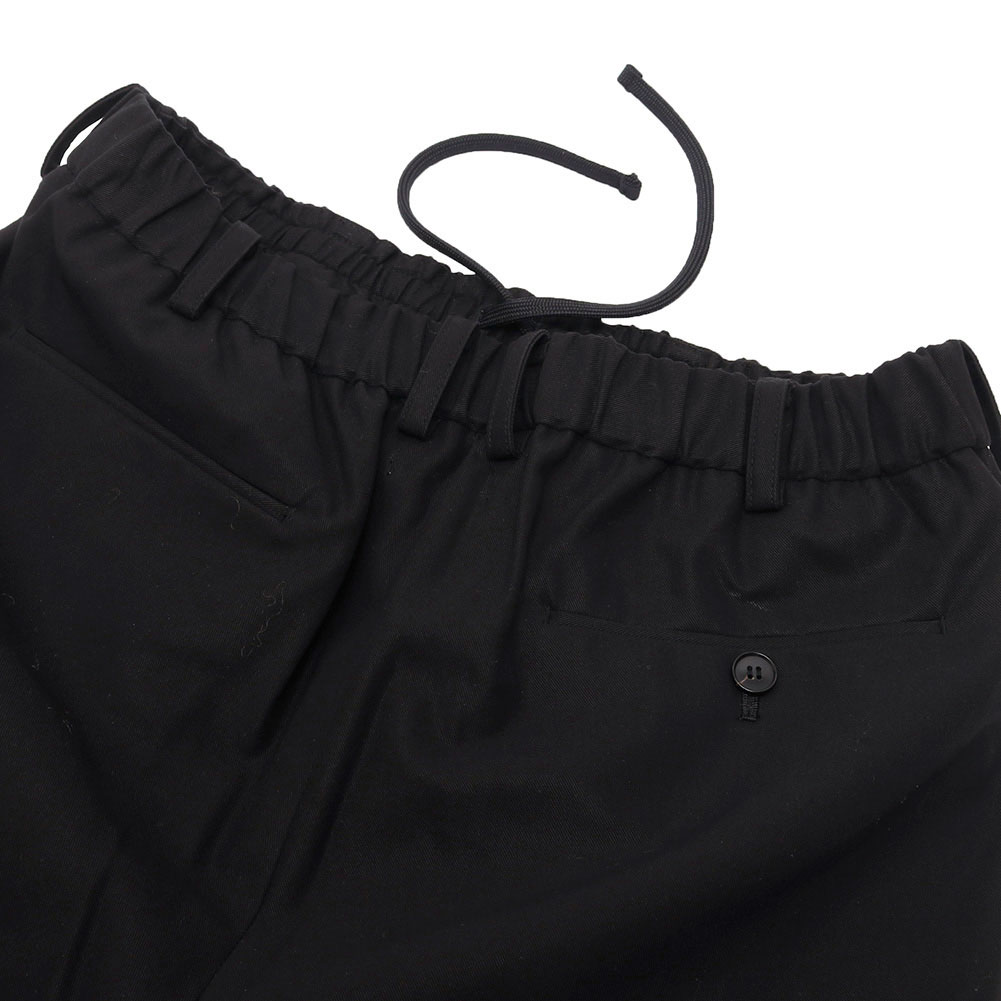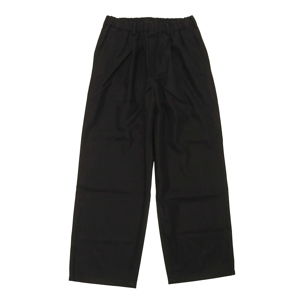 ベルトループと内側にドローコードが付属され、オンオフ着用可能なディテールを持ち合わせたボトムスになります。オーガニックコットンに特殊加工を施し、シルエットもツータックでテーパードが効いた絶妙なバランスが保たれたワイドパンツと言えます。柔らか過ぎず、ジャケットやカーディガン、Tシャツとも相性良く、冬、春、秋とシーズンも長く大丈夫な頼もしいアイテムです。