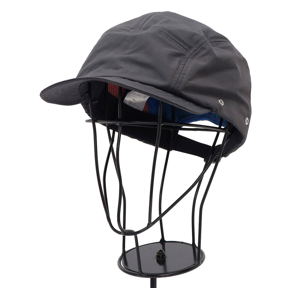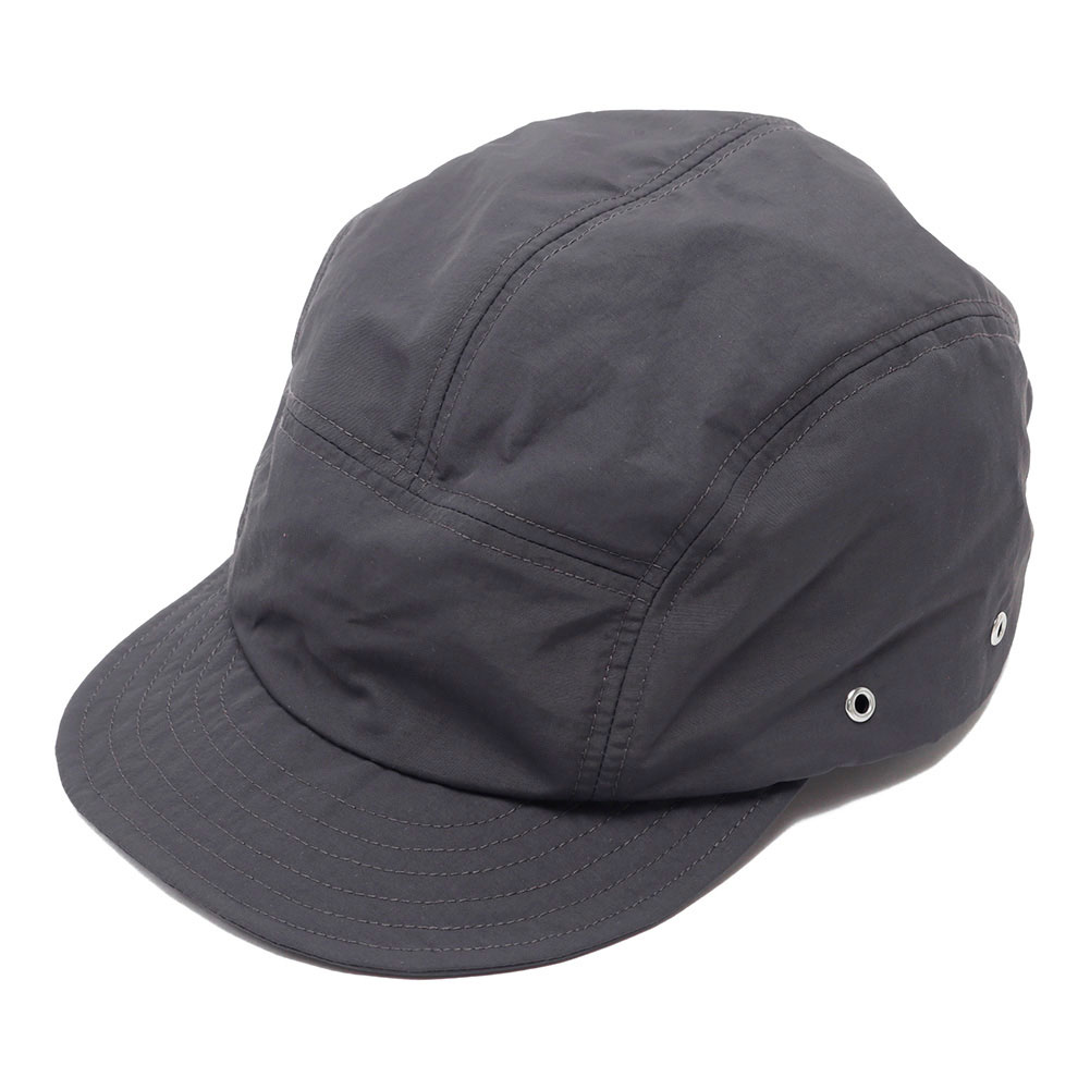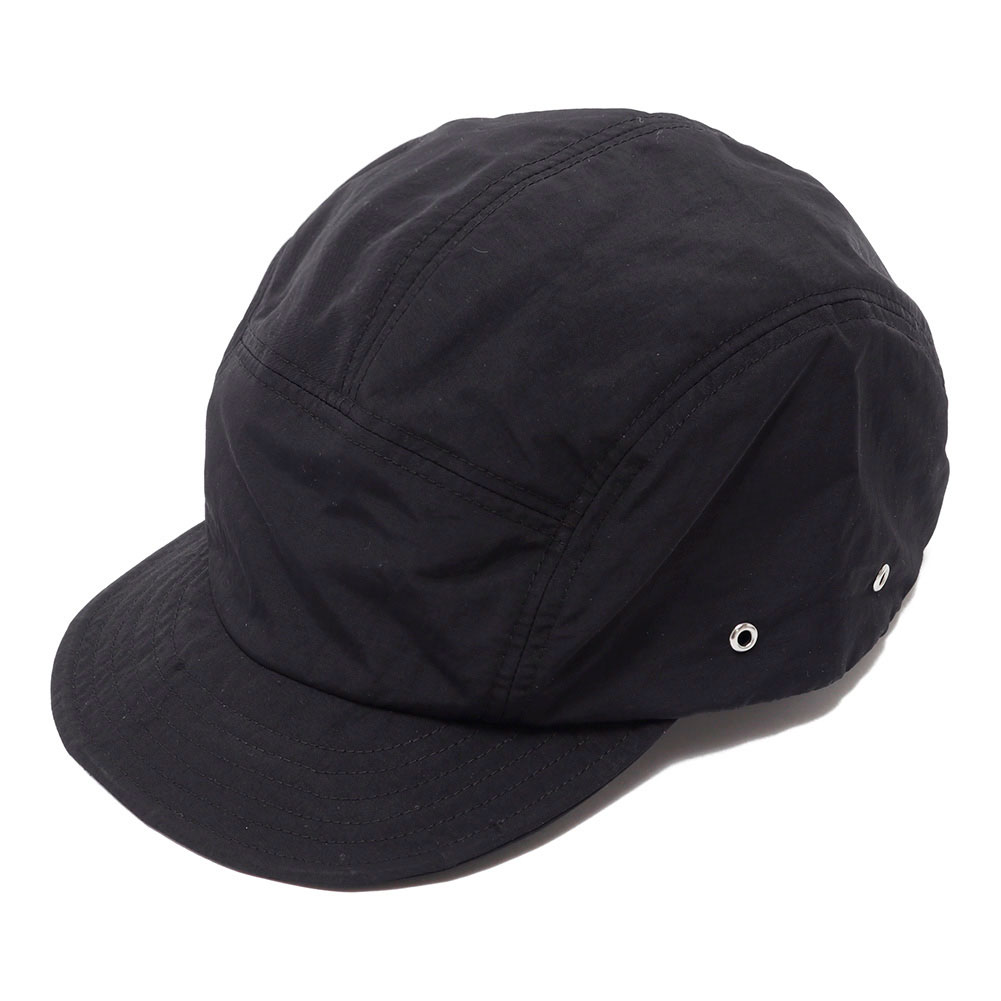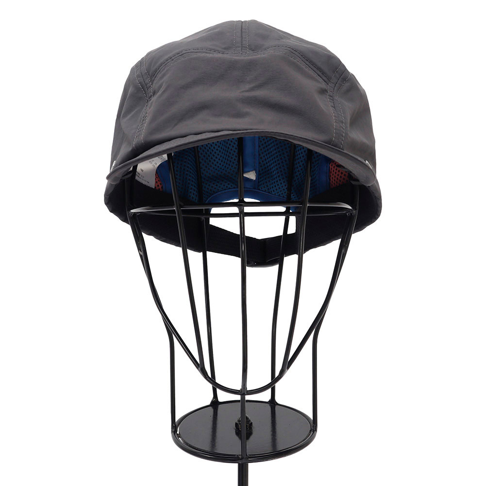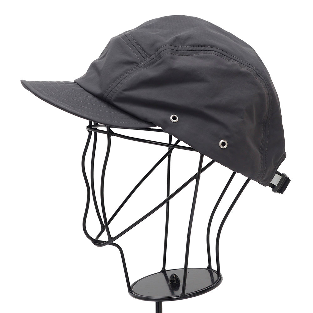 撥水、UVカットに優れ、自然なシワ感とハリ感のあるジェットキャップ。5cmのカーブバイザーの先にはワイヤーを通し、角度を調節出来ます。裏地にはメッシュ生地を使用し、アジャスターの片側には平ゴムを使用しフィット性を高める等、機能面を考慮しています。