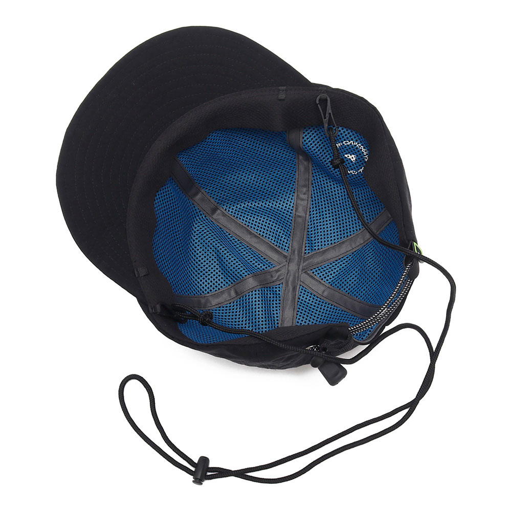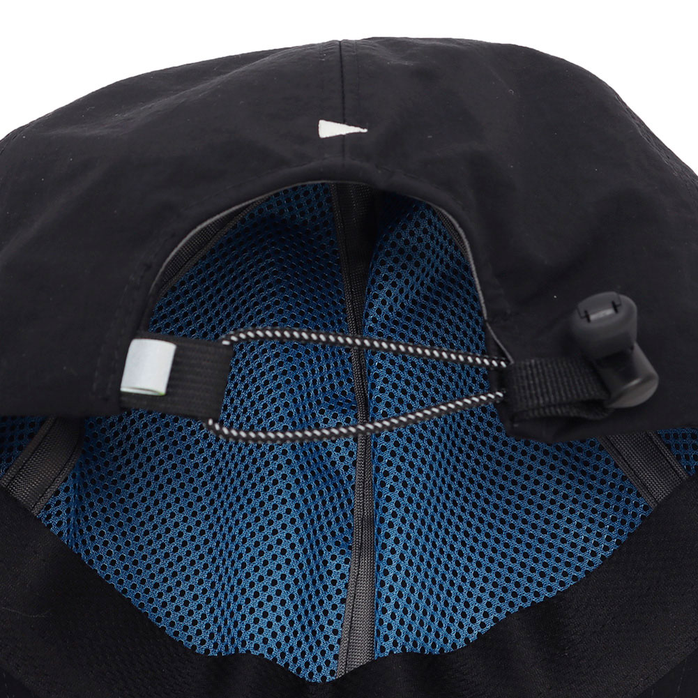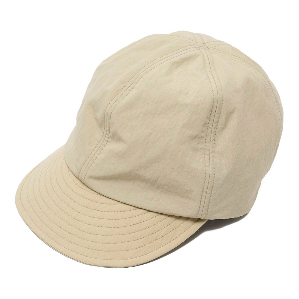 防水性・撥水性・透湿性を兼ね備えた高機能ナイロンパッカブルキャップ。裏地はメッシュ生地を使用し、機能面を強化。6パネルの程良い深さのクラウンは安定感のある被り心地。アジャスターの片側には平ゴムを使用し、フィット性を高め実用面も考慮。付属として帽子をコンパクトにたたんで収納できるミニサコッシュが付き。