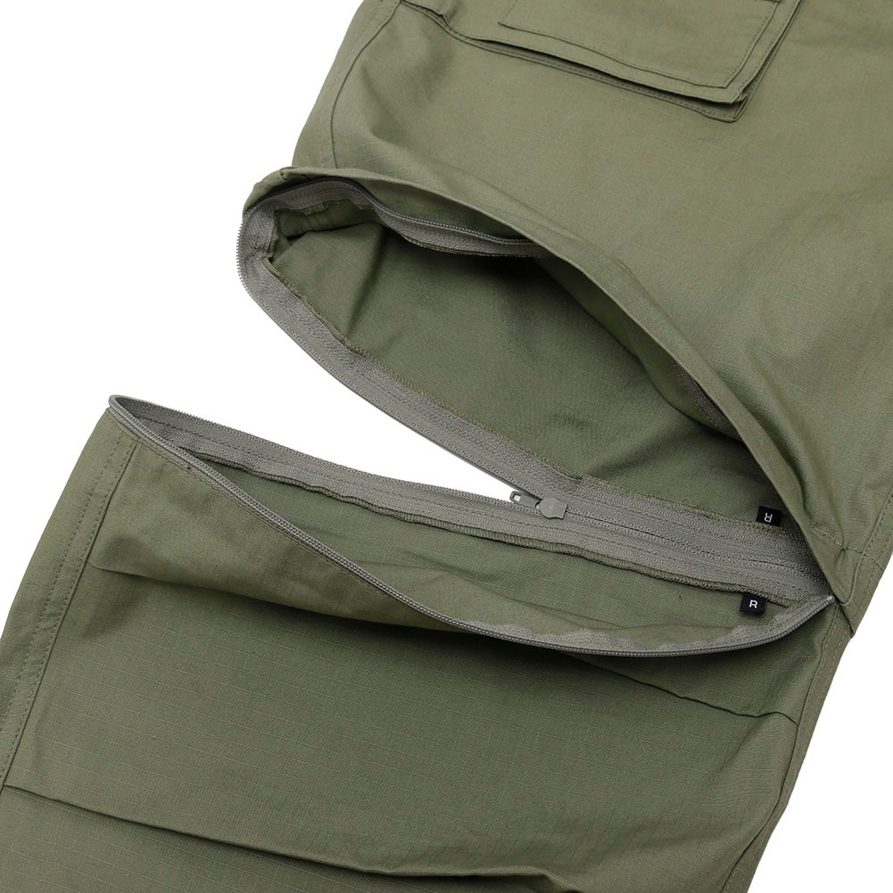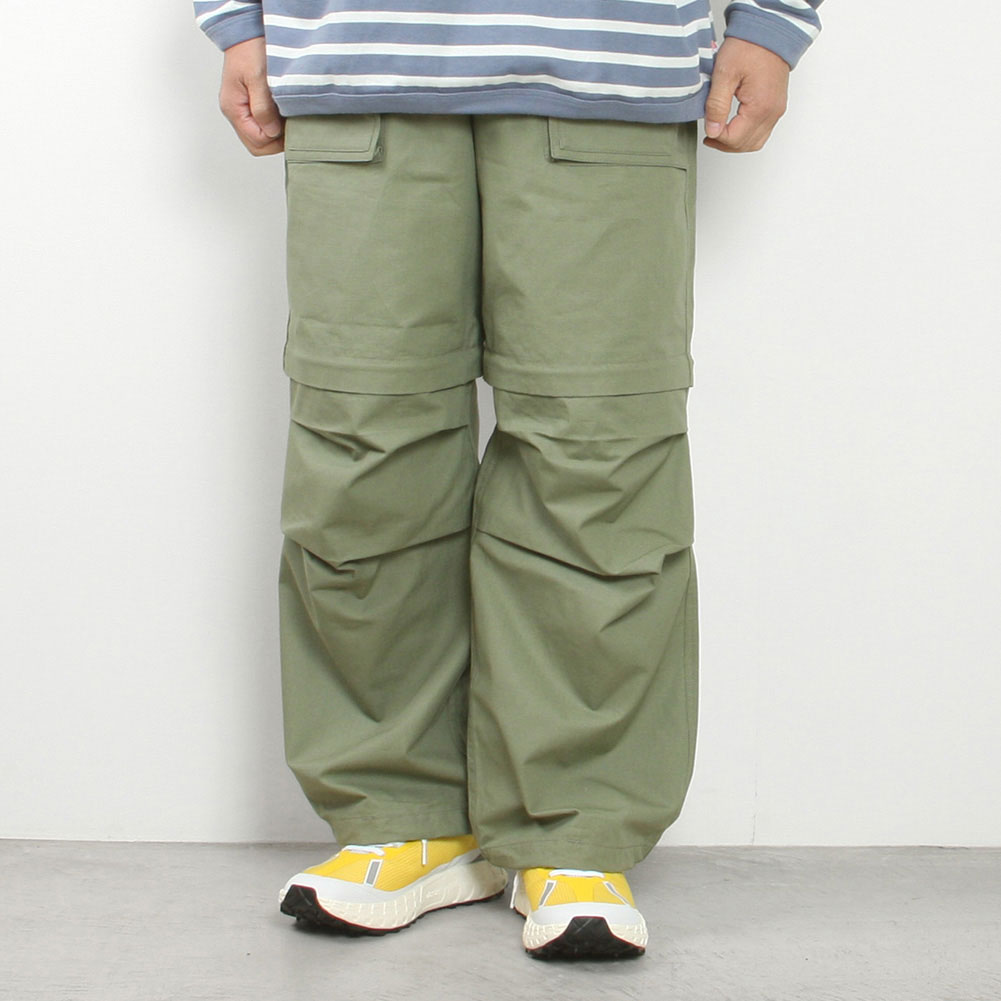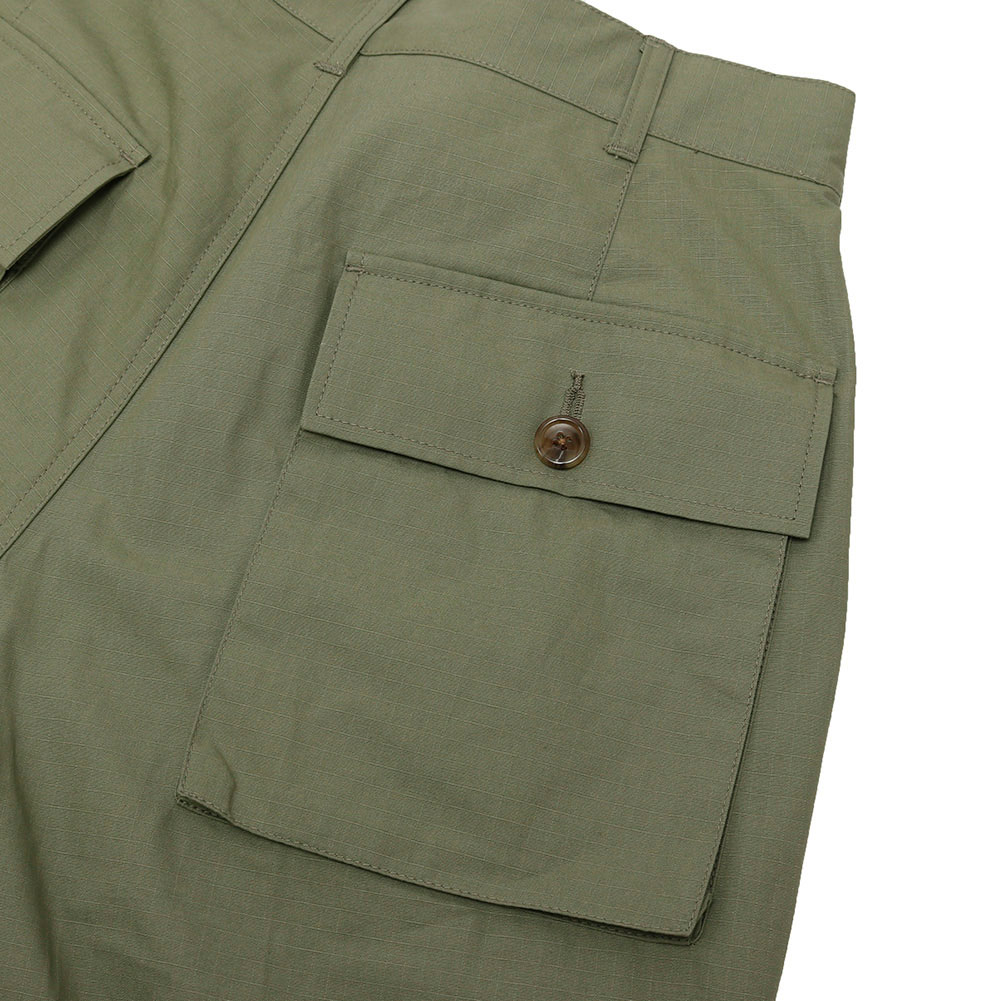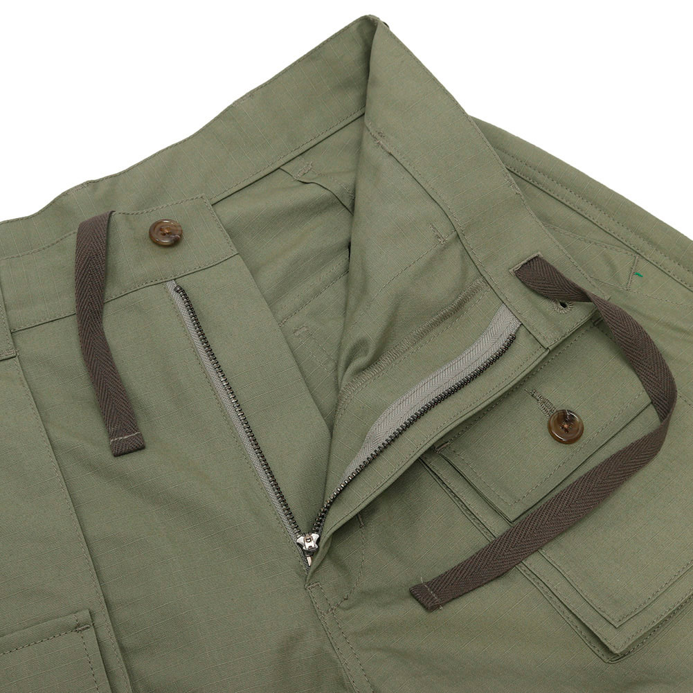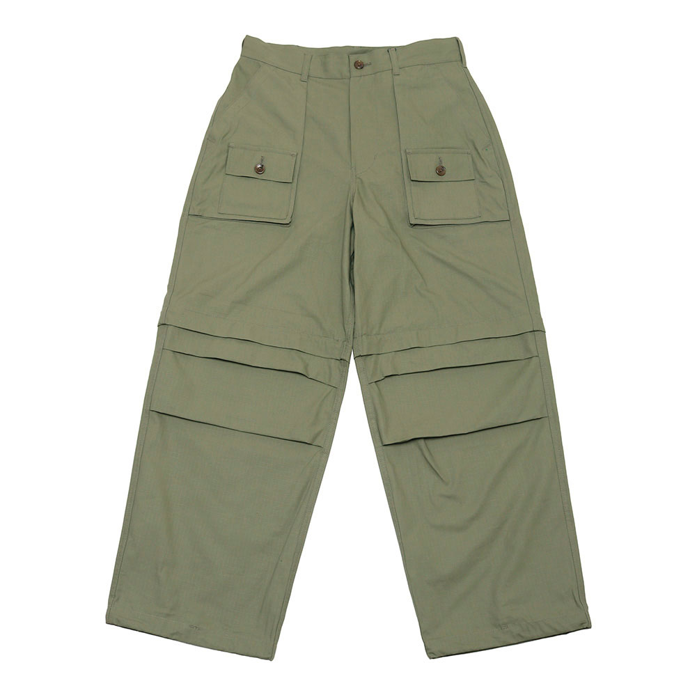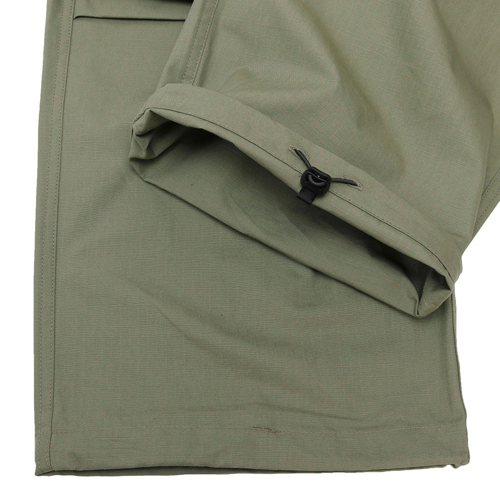 アウトドア由来の機能的なディテールを活かしつつ、移動や旅のシーンにも使いやすい仕様に整えています。タイトフィットやテーパードが主流なトレイルパンツに対し、ゆとりのあるバギーシルエットを採用。動きやすさとリラックス感のあるバランスに仕上げています。素材には、縦横に強化糸を格子状に織り込んだリップストップ生地を使用。小さな裂けが広がりにくく、高い耐久性を備えています。天然素材の風合いと質感を活かしながら、日常から旅まで対応する実用的な一本です。