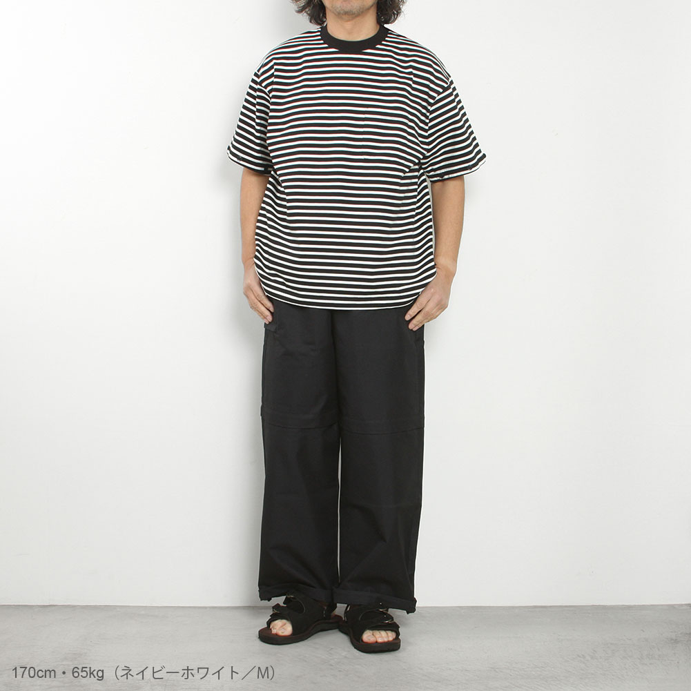 しっかりとしたウエイトのボディを使用した袖を外す事が可能なデタッチャブル仕様のロングスリーブポケットボーダーT。外せば半袖になり様々なコーディネートが楽しめる1枚。