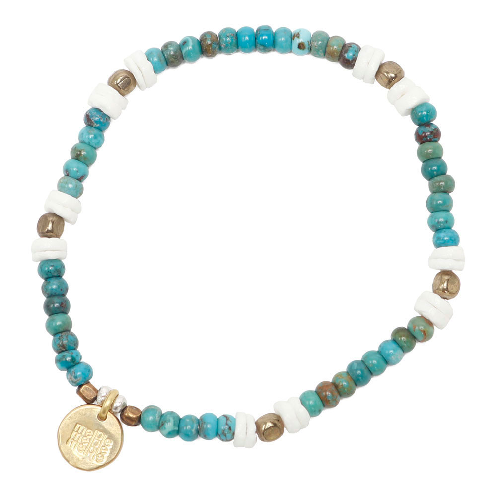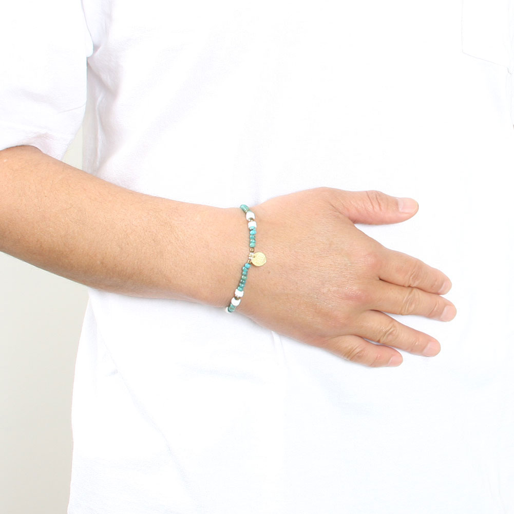 今回リリースされたmelple jewelryは2014年〜2017年頃に頻繁に訪れていたニューメキシコ州から受けたインスピレーションを込めた力作。1つずつバランスをみながら丁寧に作られたターコイズブレスレット。ストレッチコード入りなので着脱も楽に出来ます。