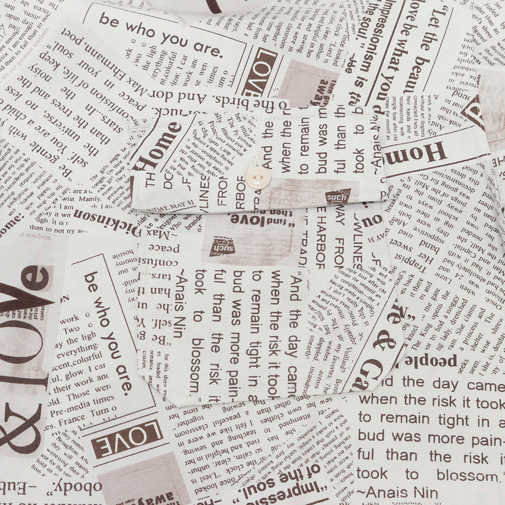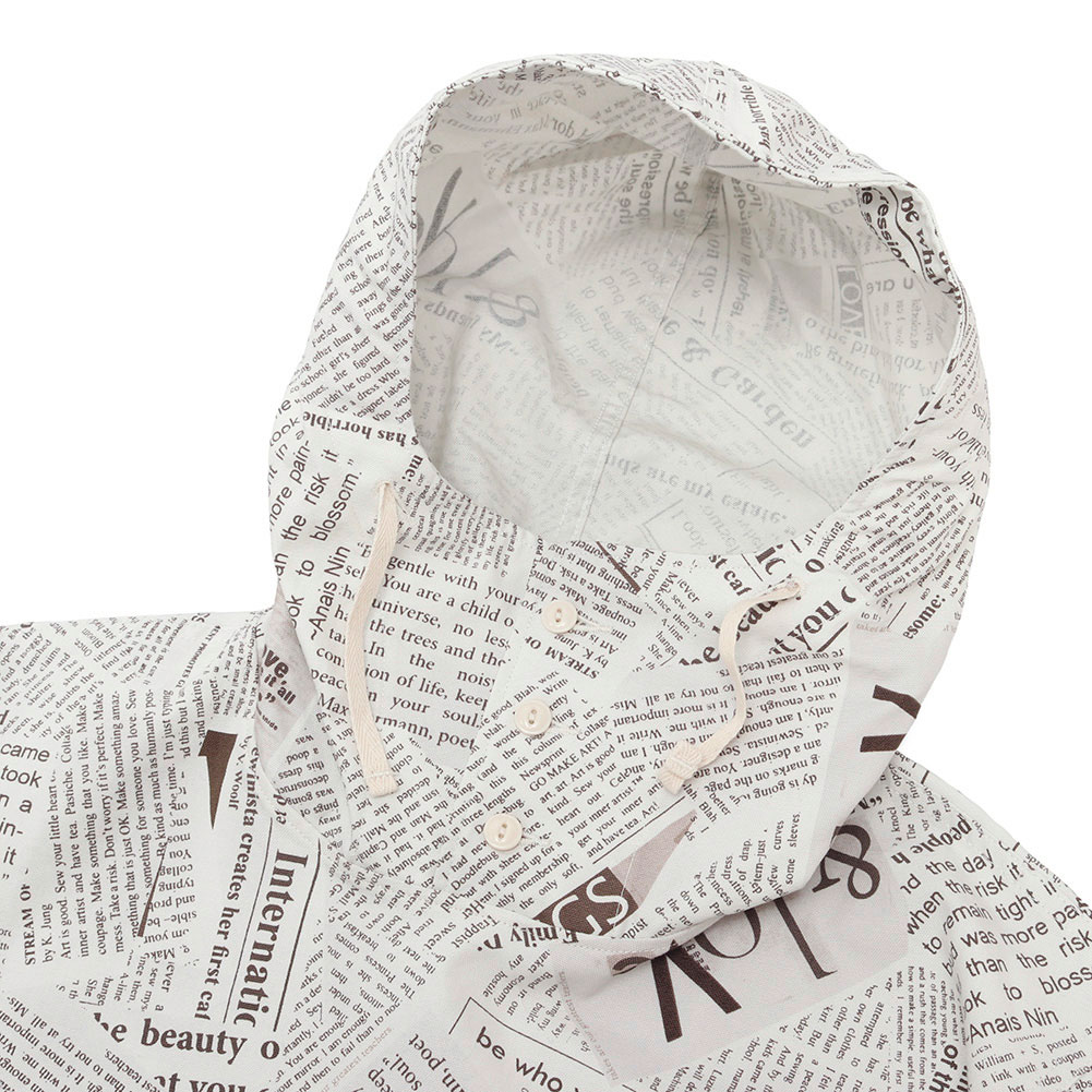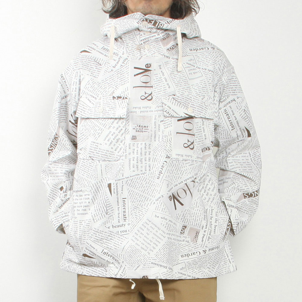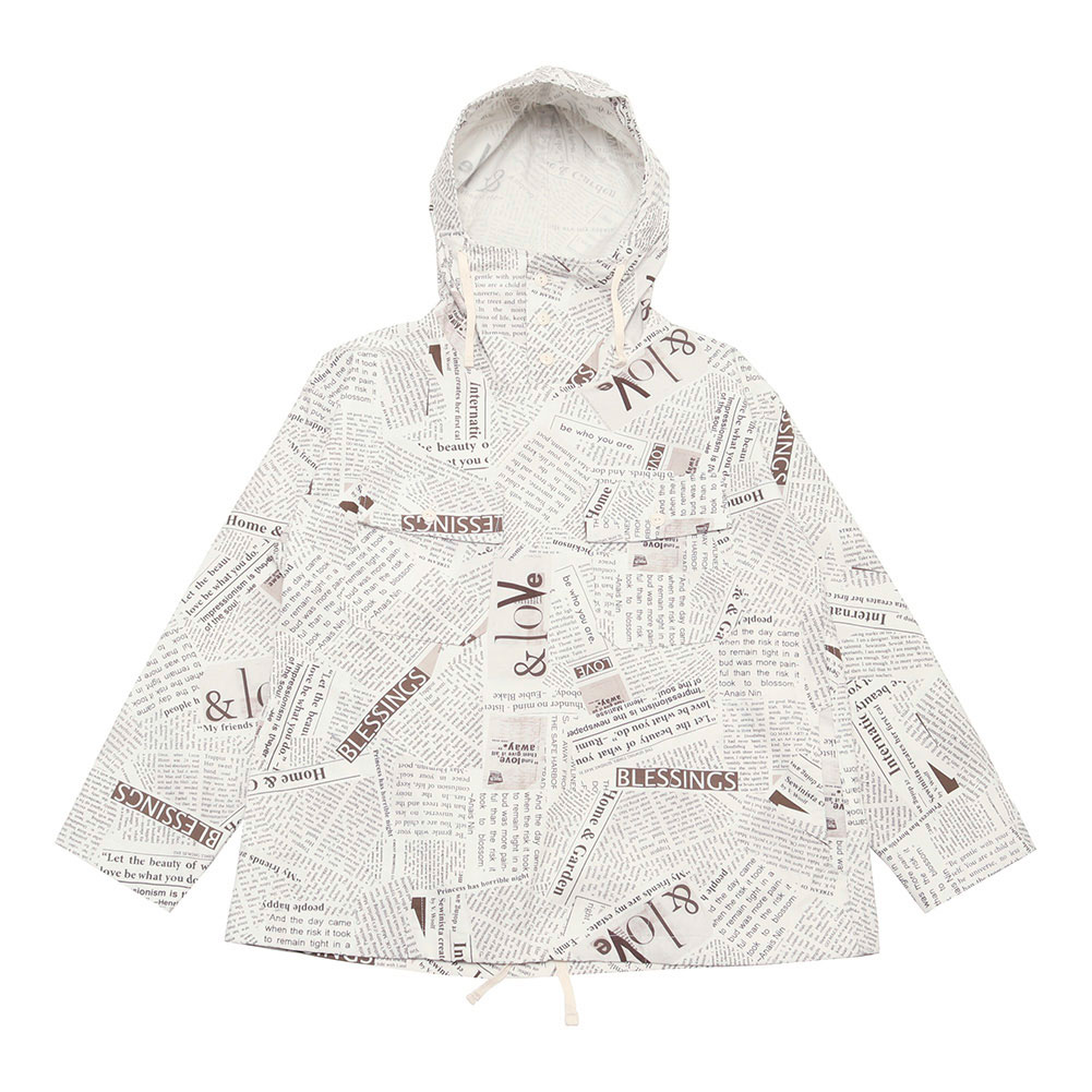 ニュースペーパーをプリントしたコットンキャンバス素材のカグールシャツになります。柔らか過ぎず程よくしっかりとした生地なので、着込むほどに経年変化が楽しむ事も出来るパーカーとなっております。一枚でもレイヤードでも様々なコーディネートが楽しめる1枚です。