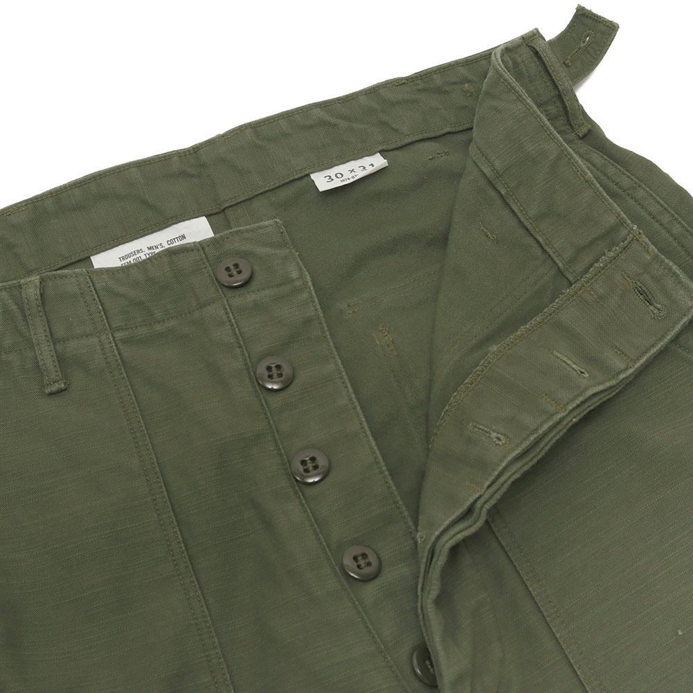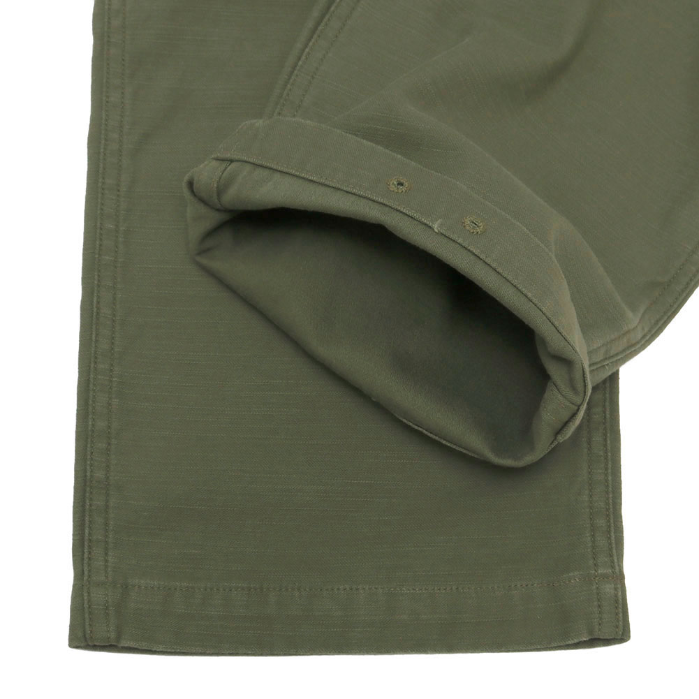 米軍にて1940年代から70年代まで長く採用されていたユーティリティパンツ。日本では「ベイカーパンツ」の愛称で広く知られ、ベイカーパンツは、パン職人(Baker)の作業着が語源であり、ミリタリーパンツの定番的存在です。生地には、バックサテンと呼ばれる緯ムラの強い織りを採用し、スレン染料で染め上げたオリジナルファブリックを使用。穿き込むほどに風合いが増し、経年変化をしっかりと楽しめる仕上がりです。