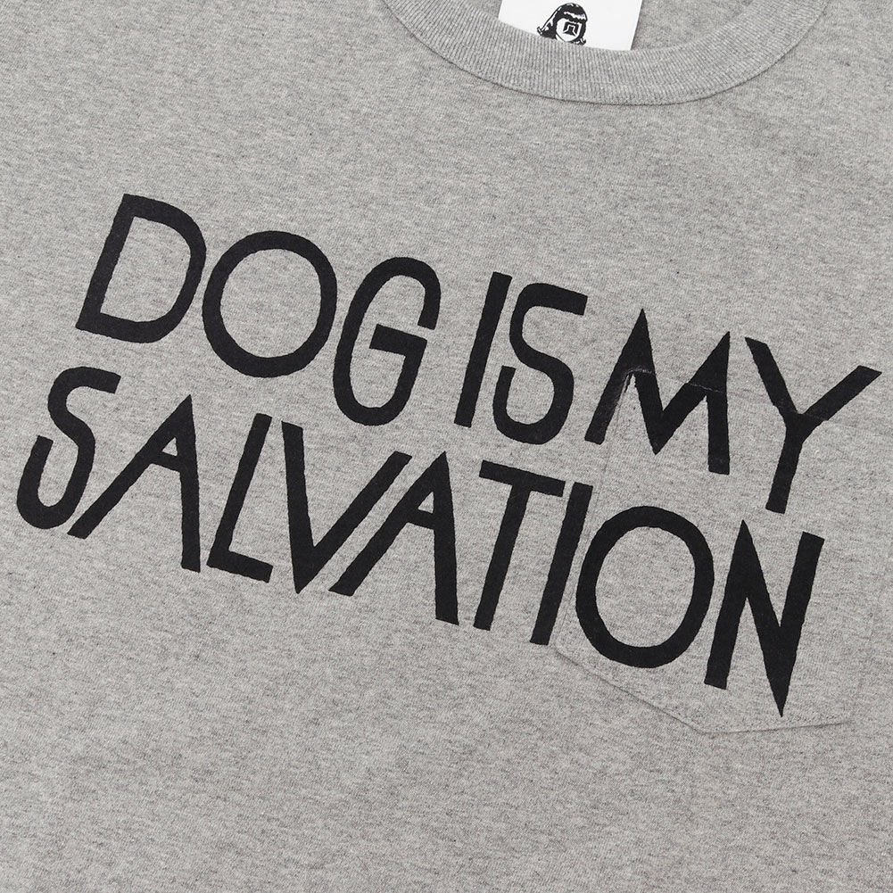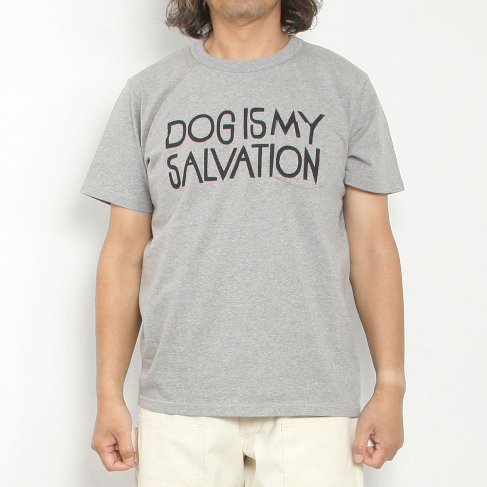 タコマフジの提唱する犬愛讃歌「DOG IS MY SALVATION」を表現して頂きました。胸ポケットとプリントが重なる部分のクラフト感と繊細さ、プリント1枚1枚の微妙な差異も魅力なTシャツです。