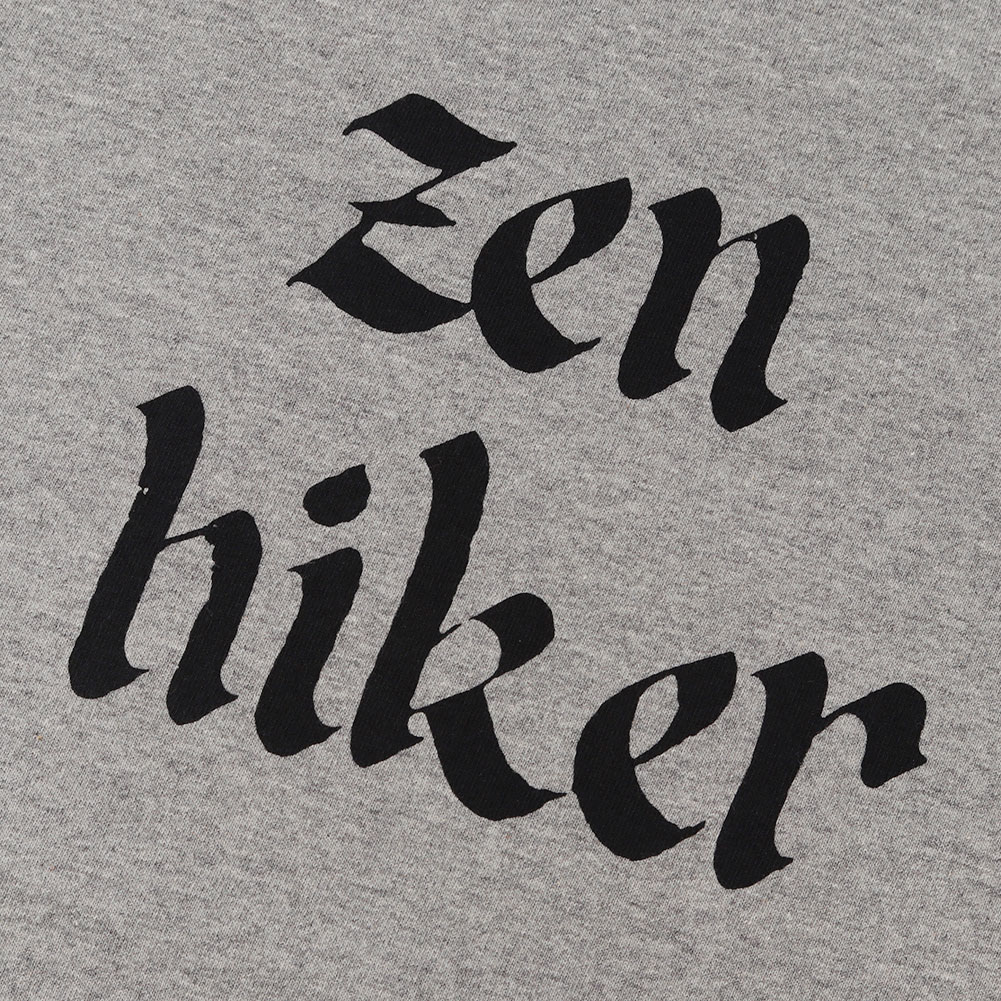 タコマフジの定番、ジェリー鵜飼の手がけるZEN HIKER。定番配色ながら、これまでリリースしていなかった杢グレイxブラックの登場です。時代やトレンドと一線を画すアートワークが映えるTシャツになりました。