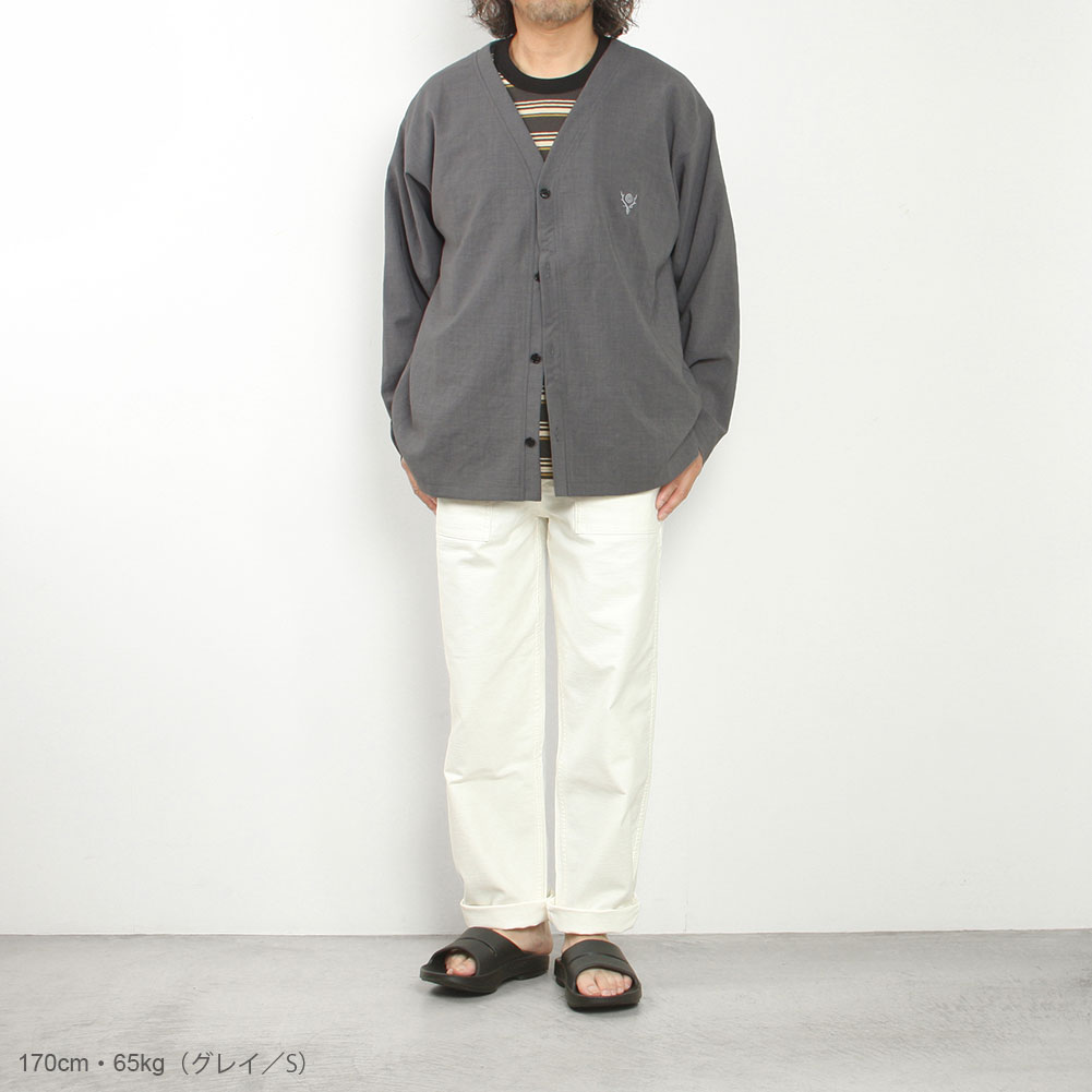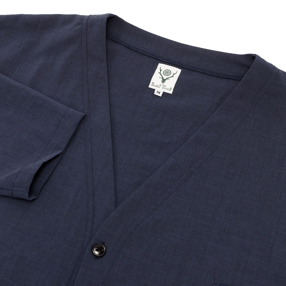 清涼感あるポリエステル素材を使用し、ボタンはキャッツアイを使用した拘りあるカーディガン。空調が効いた空間ではとても重宝し夏の必須アイテムと言っても過言ではないでしょう。是非、このシャリ感を一度お試し下さい。