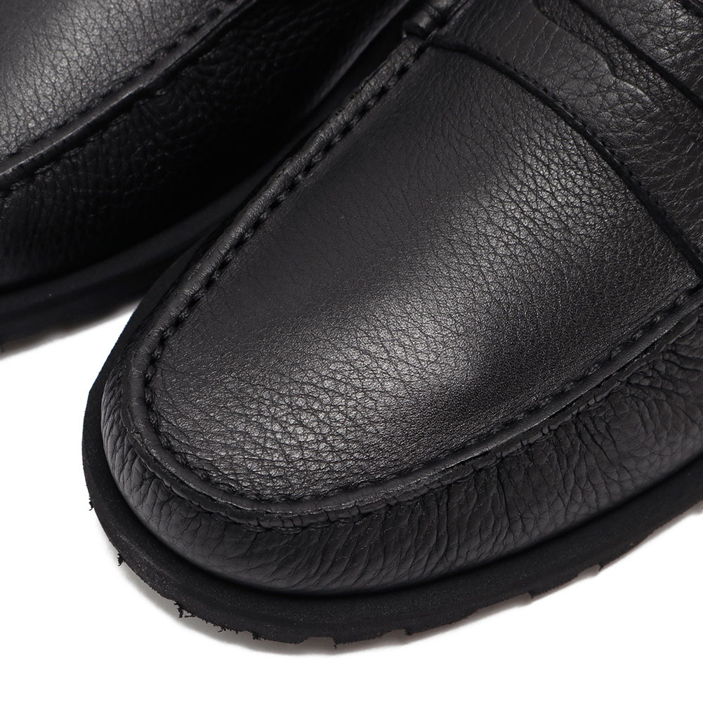 モカシンコインローファー「CORAUX(コロー)」の厚底タイプです。本モデルはデッキシューズをベースとしているので、素足履きも出来て、水に強いのが特徴です。「RAID SOLE」と呼ばれる少しボリュームのあるラグソールを使用することで、スニーカーのようなスポーティさで足元を軽やかに演出しつつ、レザーシューズの佇まいを残した一足です。