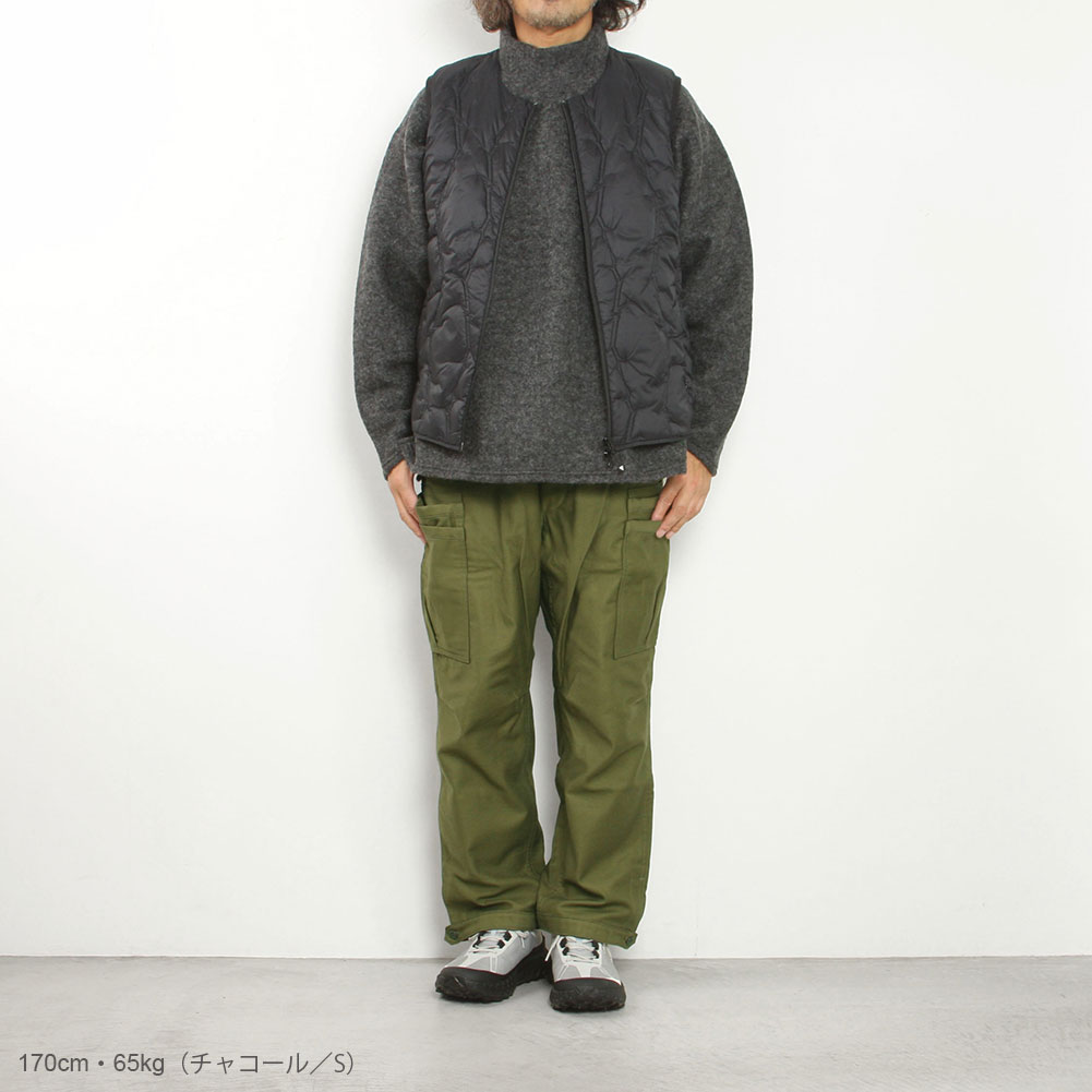 ウールとポリエステルを使用したハイブリットな軽量MOCKNECK。ニットでもフリースでもない不思議なトップス。様々なコーディネートが楽しめ、スリットと裾にはワンポイント刺繍付き。