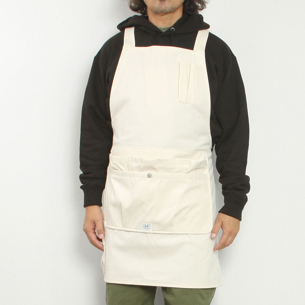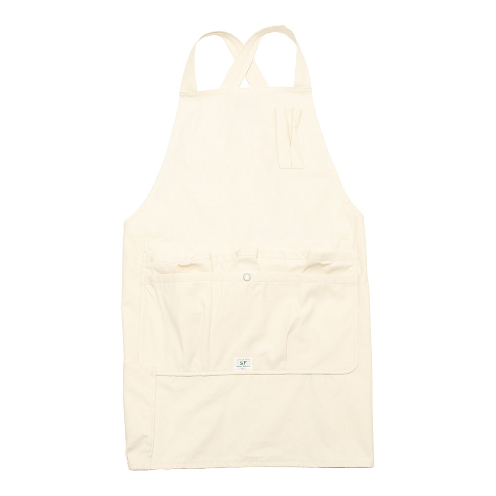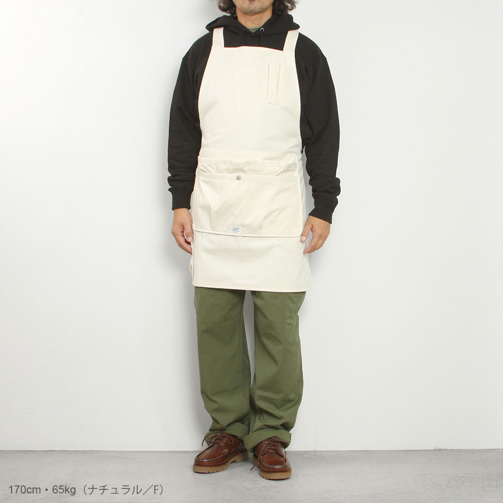さほど重さを感じさせないコットンを使用したWhole Holeシリーズのエプロンの登場。胸位置にペン差し、フロントに大容量のポケットが鎮座し、裾にもさらにポケットが付属と言うガーデニングからキッチン迄幅広く活躍できるアイテムになります。男女問わずお使い頂けますので、プレゼントにもオススメです。