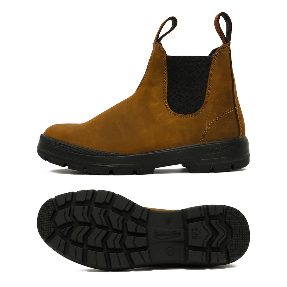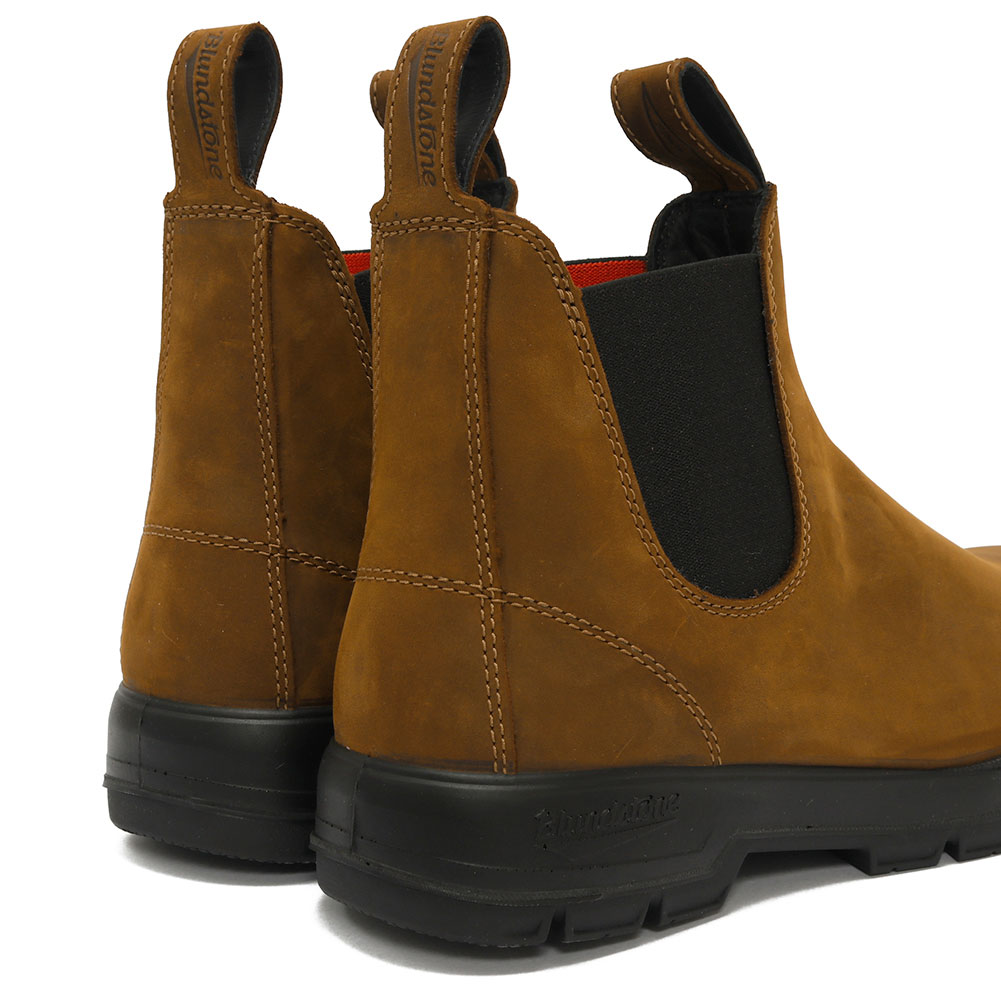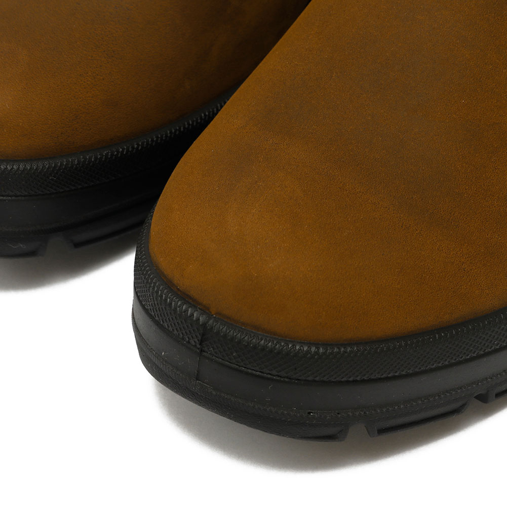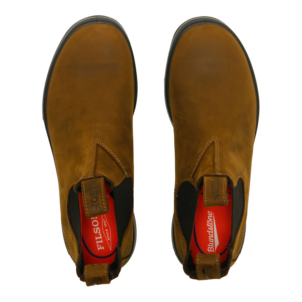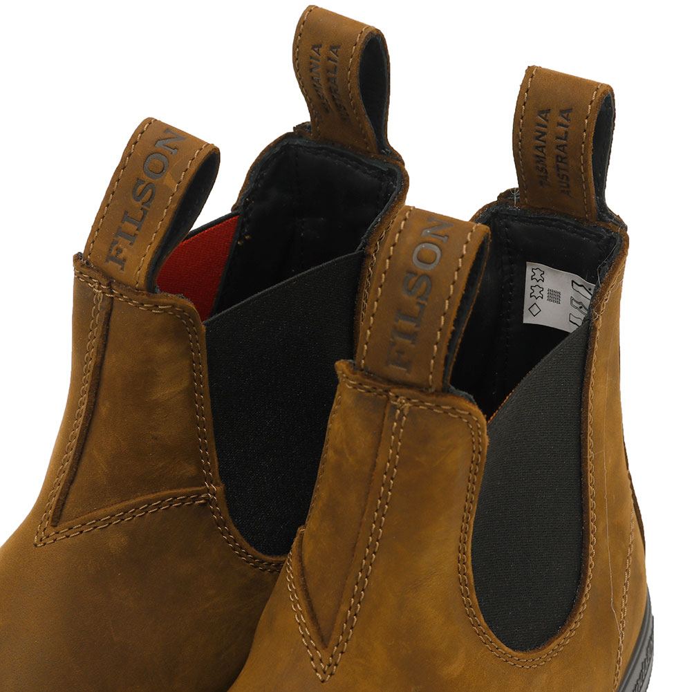 Blundstone×FILSONのコラボレーションによる、撥水加工を施したオイルド&ワックス加工されたヌバックレザーを採用し、全天候対応・長時間歩行にも耐久するサイドゴアブーツ。伝統と技術に裏打ちされた双方のクラフトマンシップを落とし込んだ特別なフットウェアコレクション。バッグループには「Blundstone」、フロントループには「FILSON」と刻印されたレザープルループが目を引くデザイン。サイドゴアの内側やインソールにはFILSONのカラーを思わせるブレイズオレンジが配され、他にはない仕上がりとなっています。 経年変化が楽しめるオイルドレザーを是非お試し下さい。