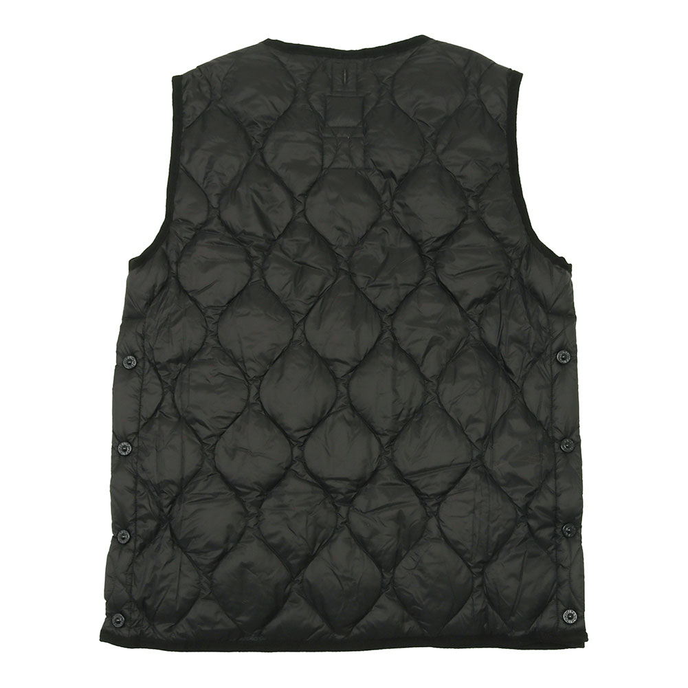 柔らかく着心地を重視した、クルーネックのミリタリーダウンベスト。軽くて柔らかな生地を使用し、保温性に優れた800FPのダウンを採用。ヘチマキルトのダウンステッチが、ミリタリー感を演出。金属ボタンと左右腰のパッチポケットがアクセント。また、両脇のスリットは、可動域が増え動きやすさをサポートし、 ボトムのポケットに手も入れやすく、重ね着を楽しんでいただける仕様としました。軽くて暖かく柔らかい、ミリタリーテイストのダウンウェアです。