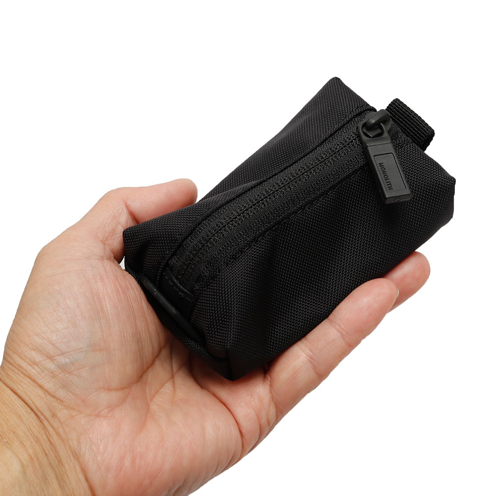 鍵等の小物の収納に最適なコンパクトサイズ。メインファブリックにはSTANDARD仕様の420×840デニールBALLISTIC AIRを採用、他のプロダクト同様に総裏生地も備えたMONOLITHの設計に基づいたアクセサリー。