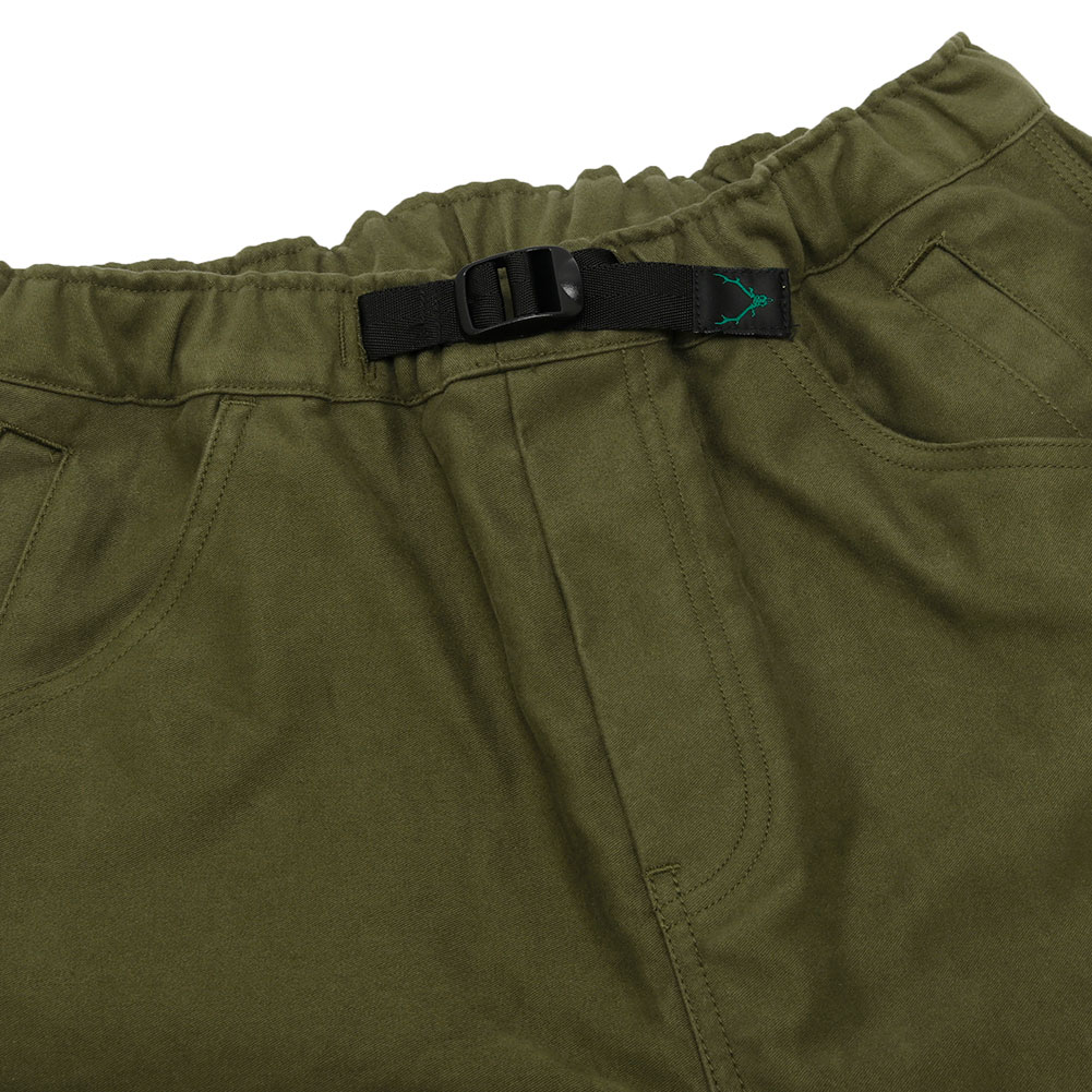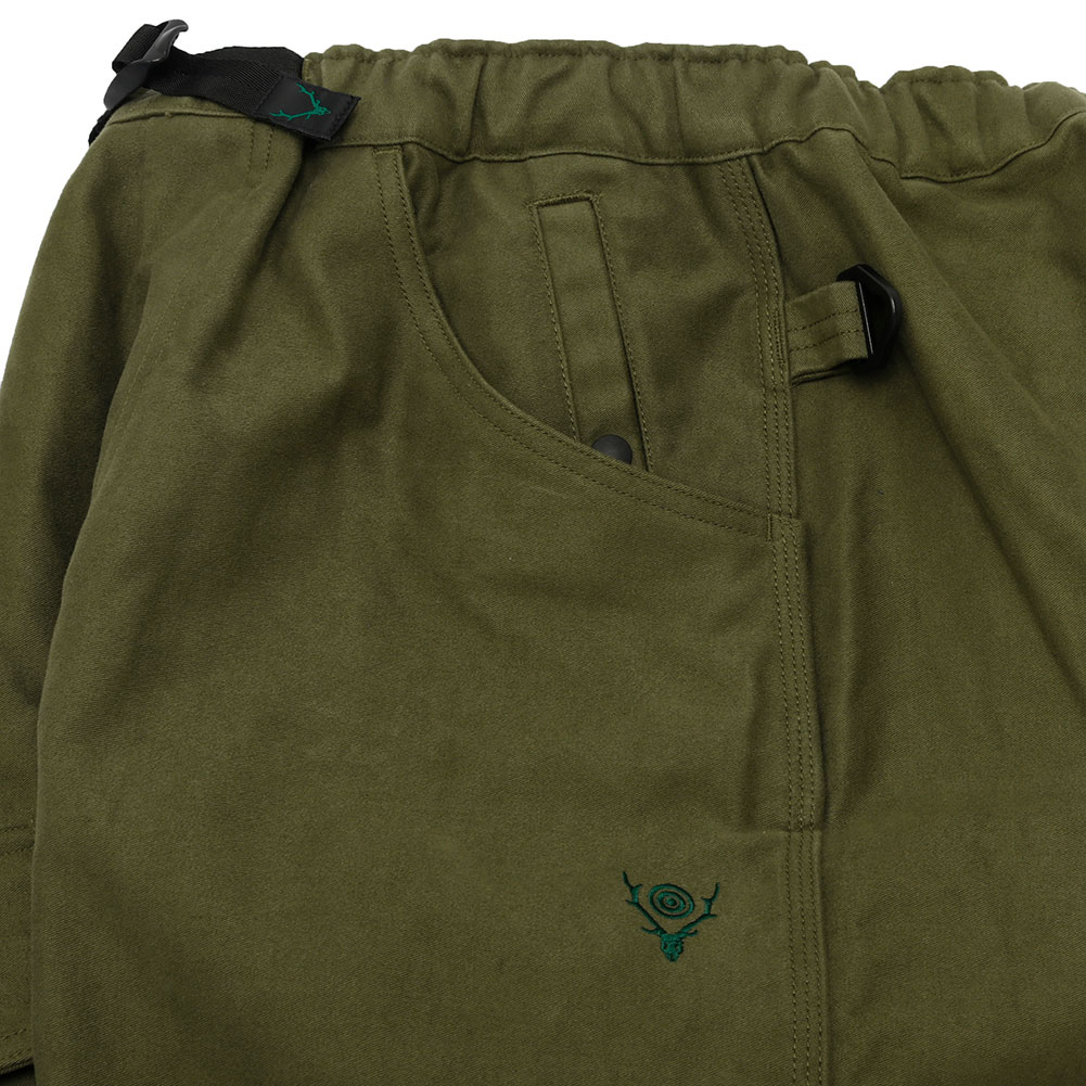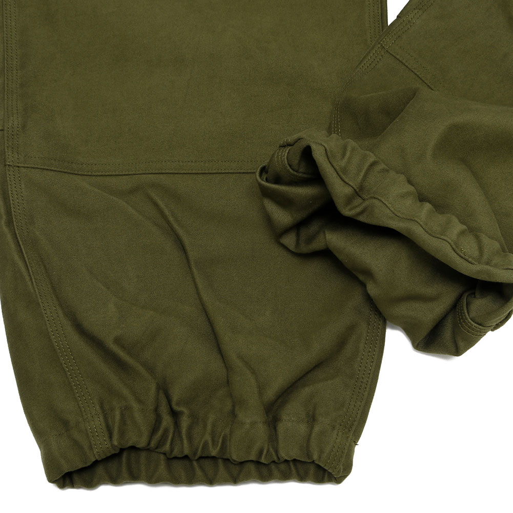 モールスキン生地を使用したウェビングベルト付属のボトムスです。右太腿のアイコン的なフラップポケットや サイドのDリングや収納力高めな付属ポケットなど機能的なディテールが付いたデザインで、ゆったりとしたワイドシルエットも特徴的なワークパンツです。