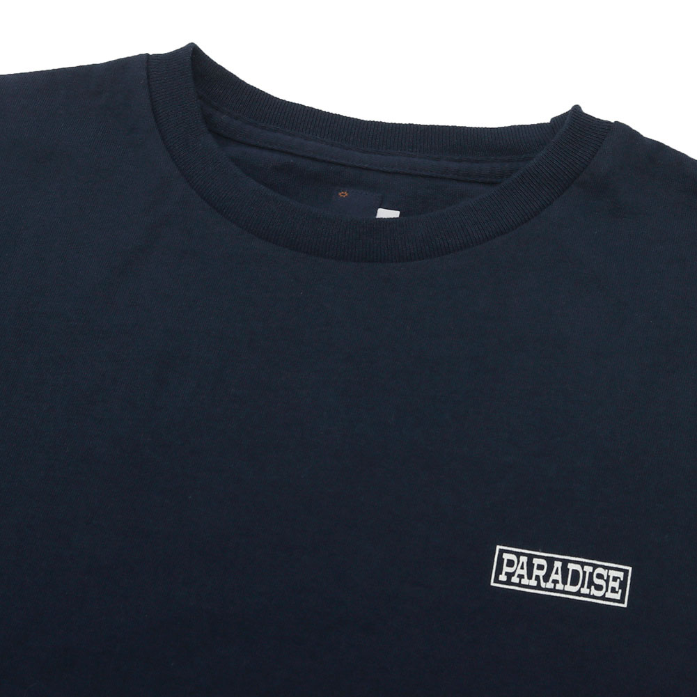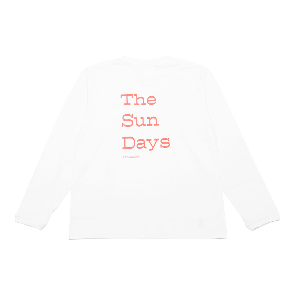 フロントにはPARADISE、バックにはThe Sun Daysの大きなプリントが入るメローな一枚。アメリカ製ボディならではの着心地を楽しめます。